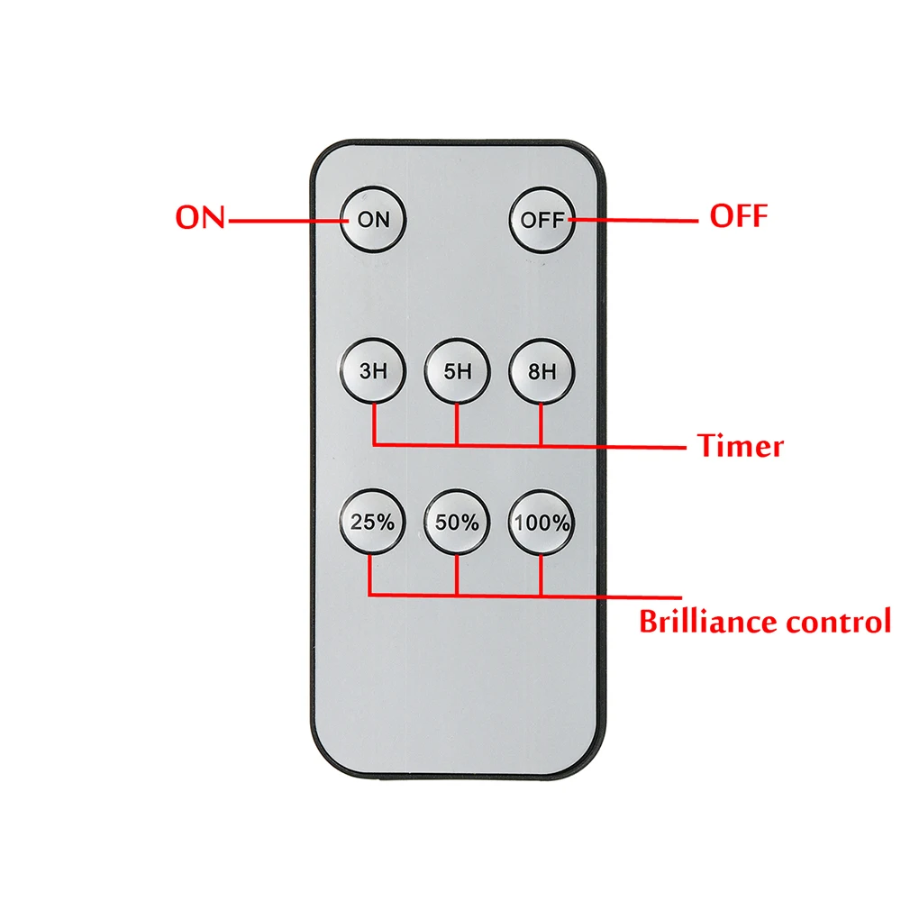 4. Вы можете использовать ИК-пульт для включения/выключения, регулировки яркости и установки времени освещения в пределах 3 метров.