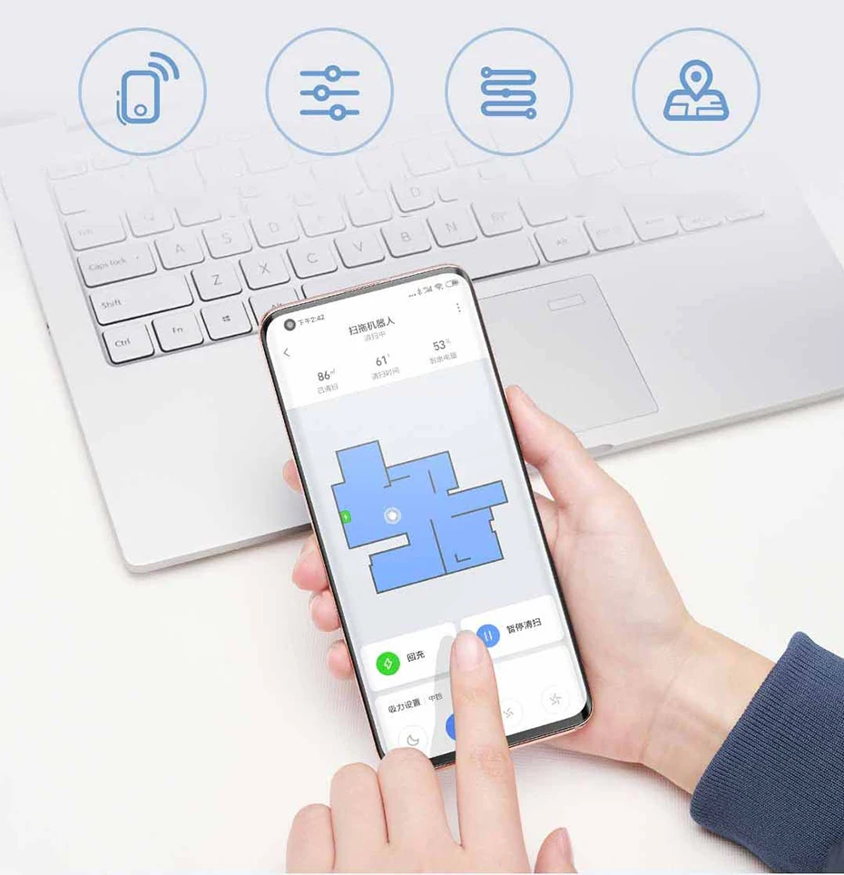 Робот очистит комнату, установив peopel через приложение mijia, люди могут установить модель и время очистки, проверить статую очистки и так далее