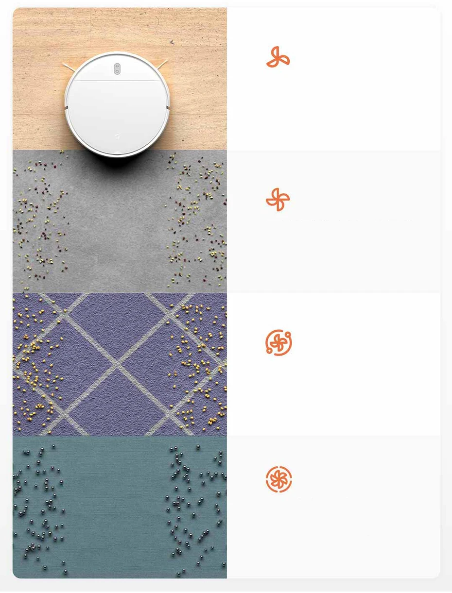 > 2200Pa большая мощность всасывания, глубоко в зазор и Эффективная очистка. > 4 вида всасывания для удовлетворения различных потребностей в очистке. > Электронный резервуар для воды, 3 режима выхода воды, уход за полом. > Подвесной всасывающий рот, швабра и плотная основная щетка могут легко справиться со всеми видами земли. > 3-х слойной система фильтрации эффективно фильтрует солнечные лучи пыли. > 82 мм Ультратонкий корпус, > Интеллектуальная навигация и точное позиционирование. Создайте карту всего дома в реальном времени. > Подключение приложения MIHOME, дистанционное управление. > 2500 мАч большая емкость батареи, длительный срок службы батареи.