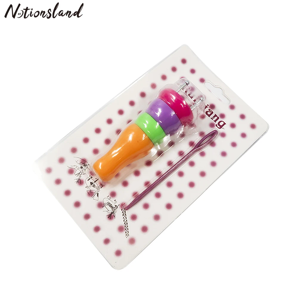 1. Пропустите пряжу через плетёную машину и оставьте нить снаружи.