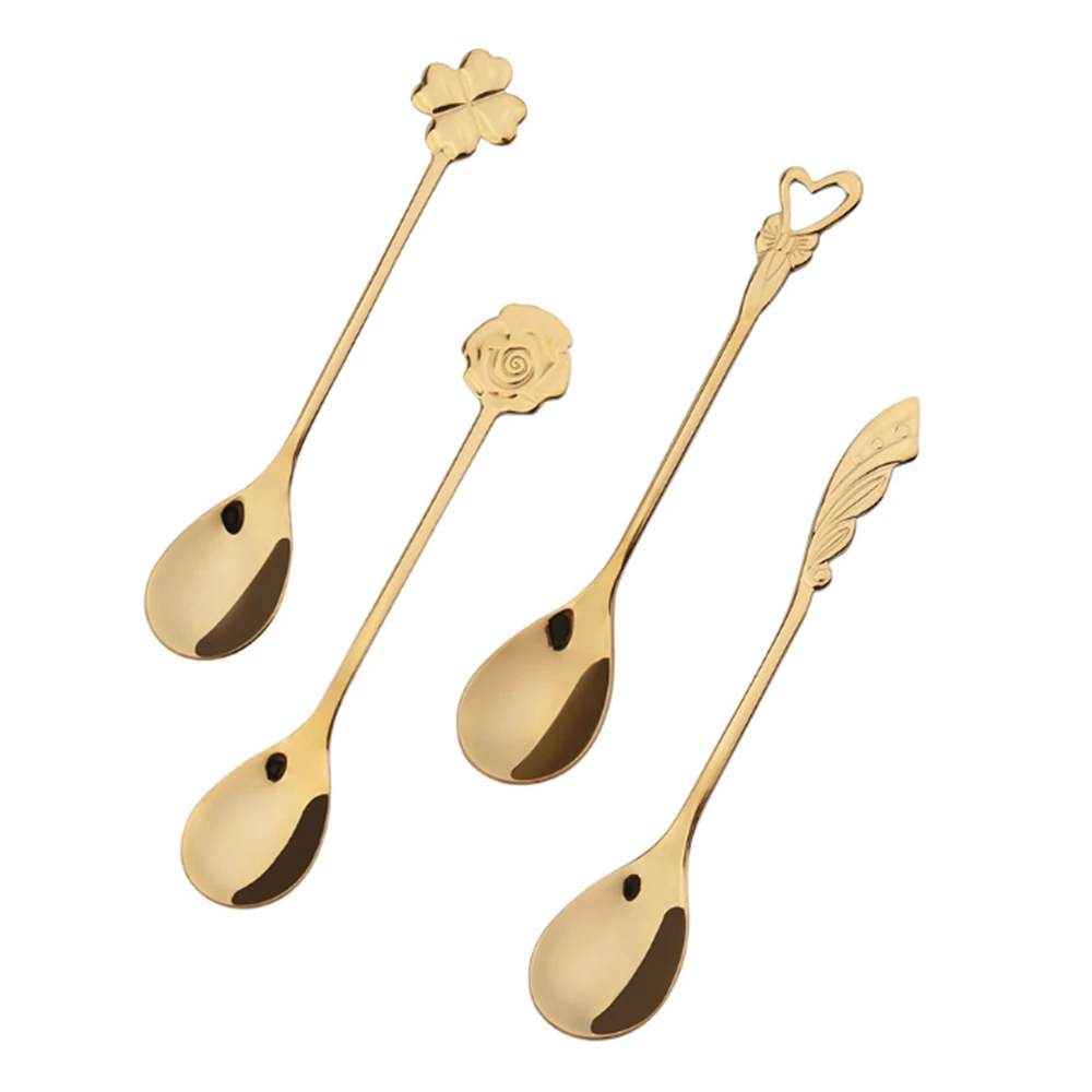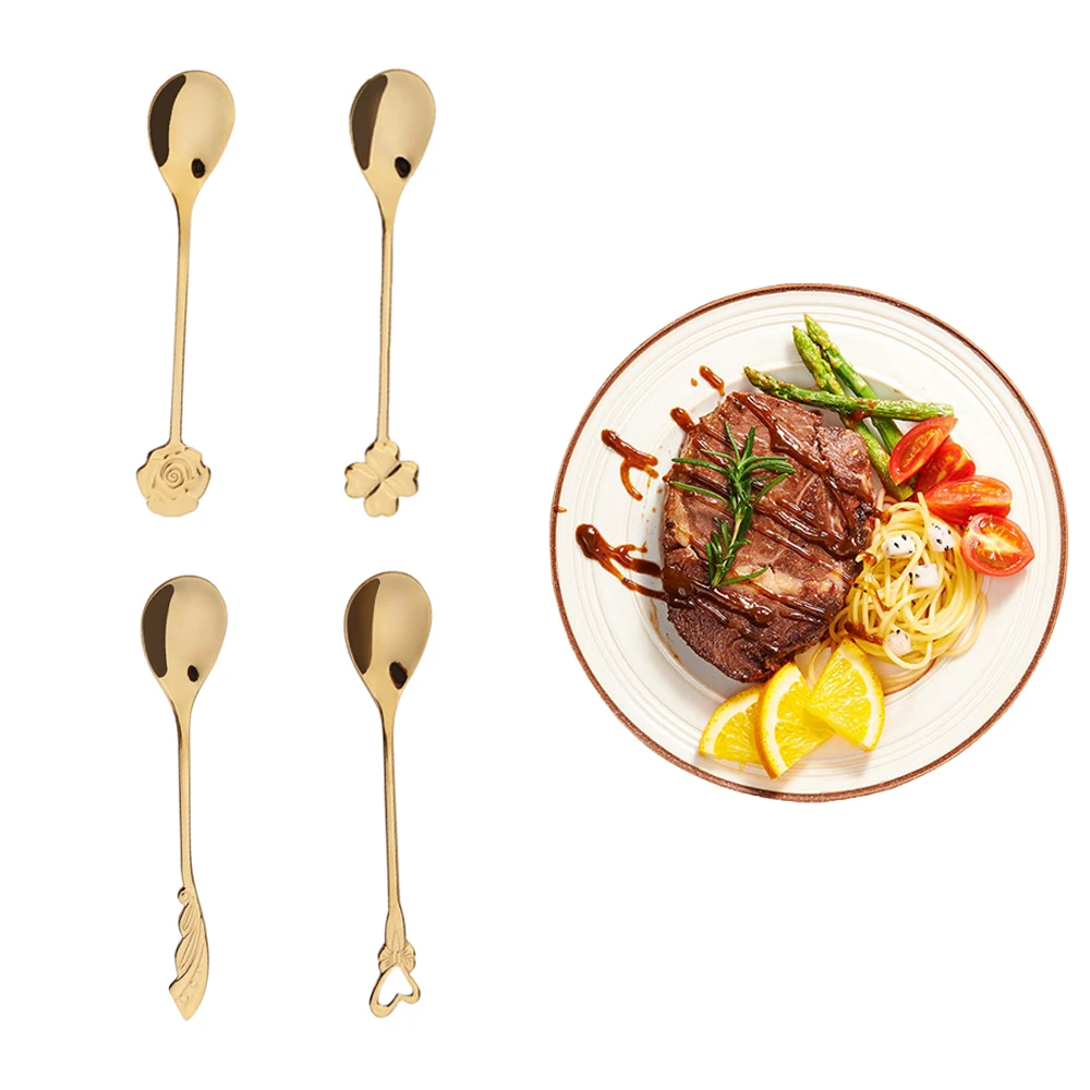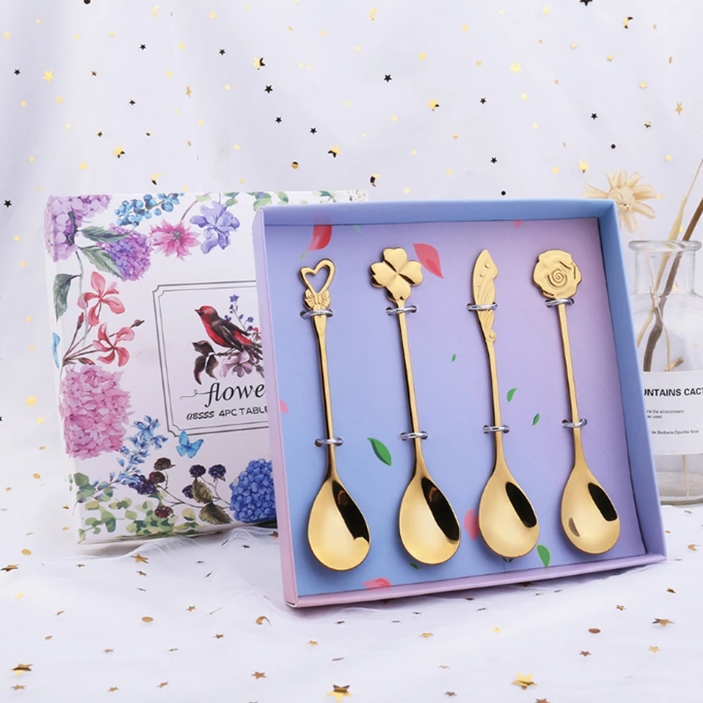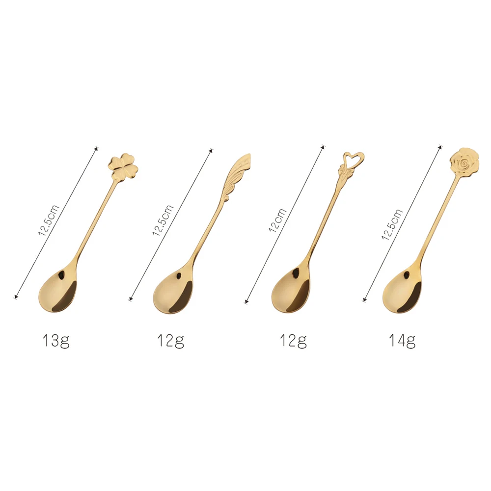Особенности: 1. Зеркальная полировка, PVD вакуумное золотое покрытие, тщательный процесс 2. Изготовлен из нержавеющей стали 304, прочный и долговечный 3. Это креативный маленький жизненный предмет, который можно использовать в качестве кофейной ложки 4. Красивая цветная упаковка может быть использована в качестве подарка для вашего любимого человека Параметры продукта Название продукта: набор из 4 304 ложек из нержавеющей стали Цвет: серебристый и золотой Материал: нержавеющая сталь Размер: Размер розы, клевера и крыла 12,5х2, 4 см Размер сердца 12x2, 4 см В комплект входит: ложка X4 Подходит для: кофейной ложки, молочной ложки, десертной ложки и суповой ложки Упаковка включает: Набор ложек из нержавеющей стали 304*1