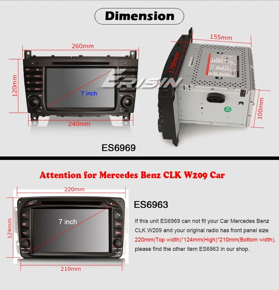 3. Если Размер передней панели этого устройства не подходит вашему автомобилю BENZ C/CLK, пожалуйста, найдите другой товарES6963В нашем магазине