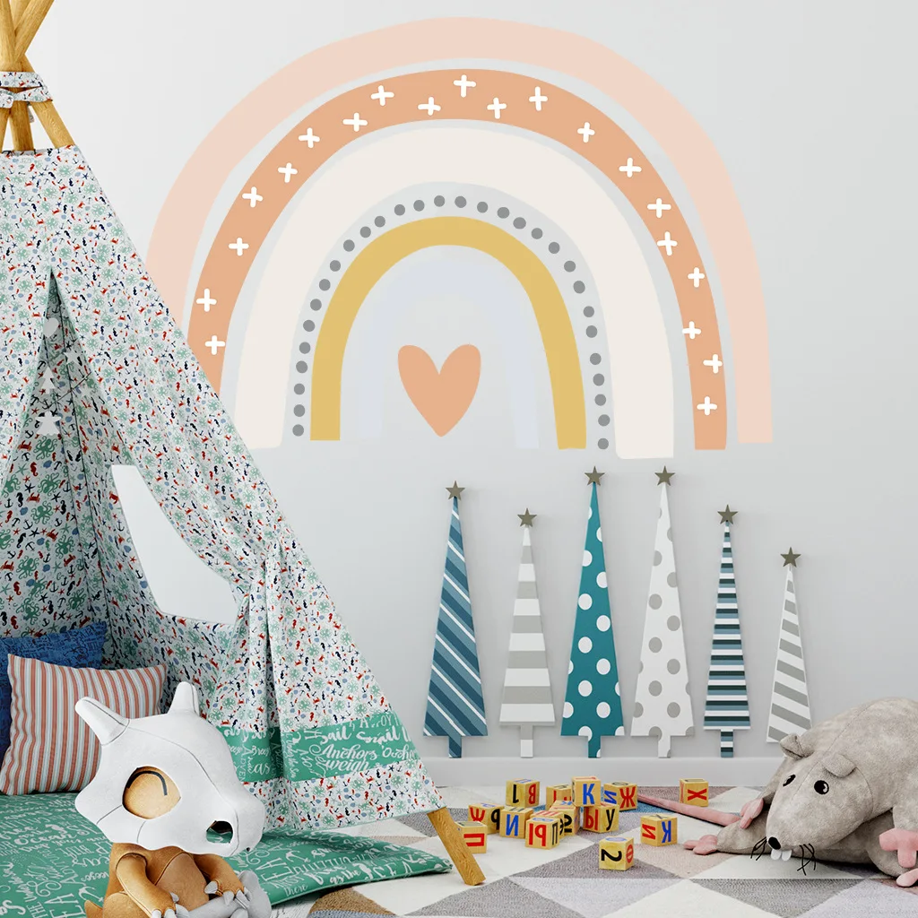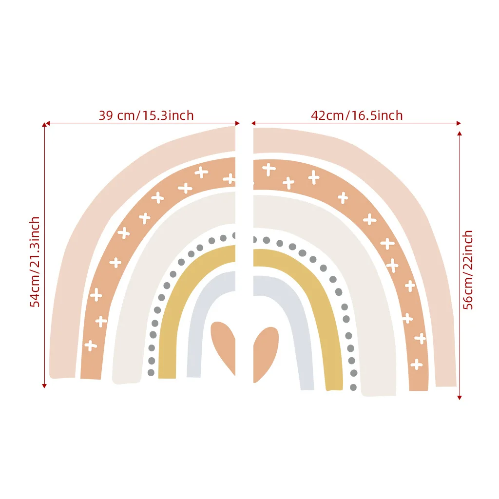 Название: радужные настенные наклейки большого размера для детской комнаты Размер: 42x55cmx2шт Материал: винил Характеристики: самоклеющиеся, экологически чистые