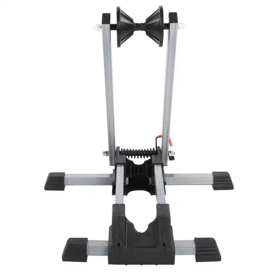 1. Вставьте велосипед в кронштейн, и он будет наклоняться, чтобы зафиксировать колеса.