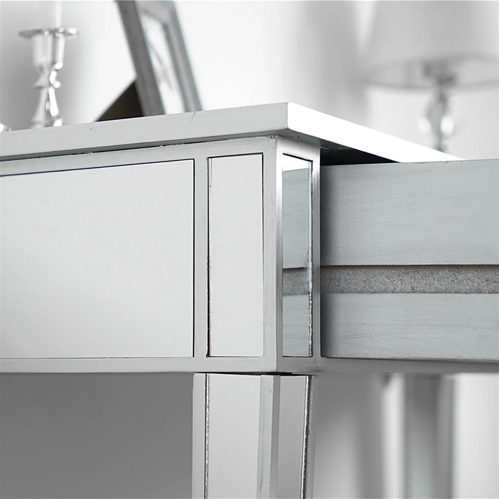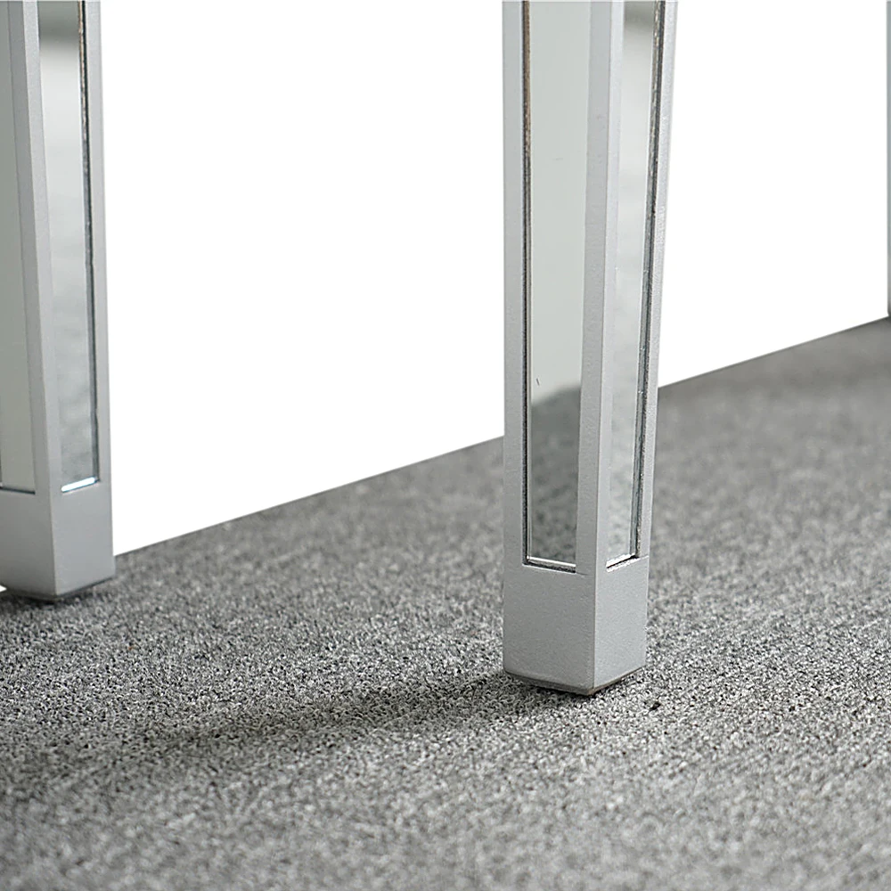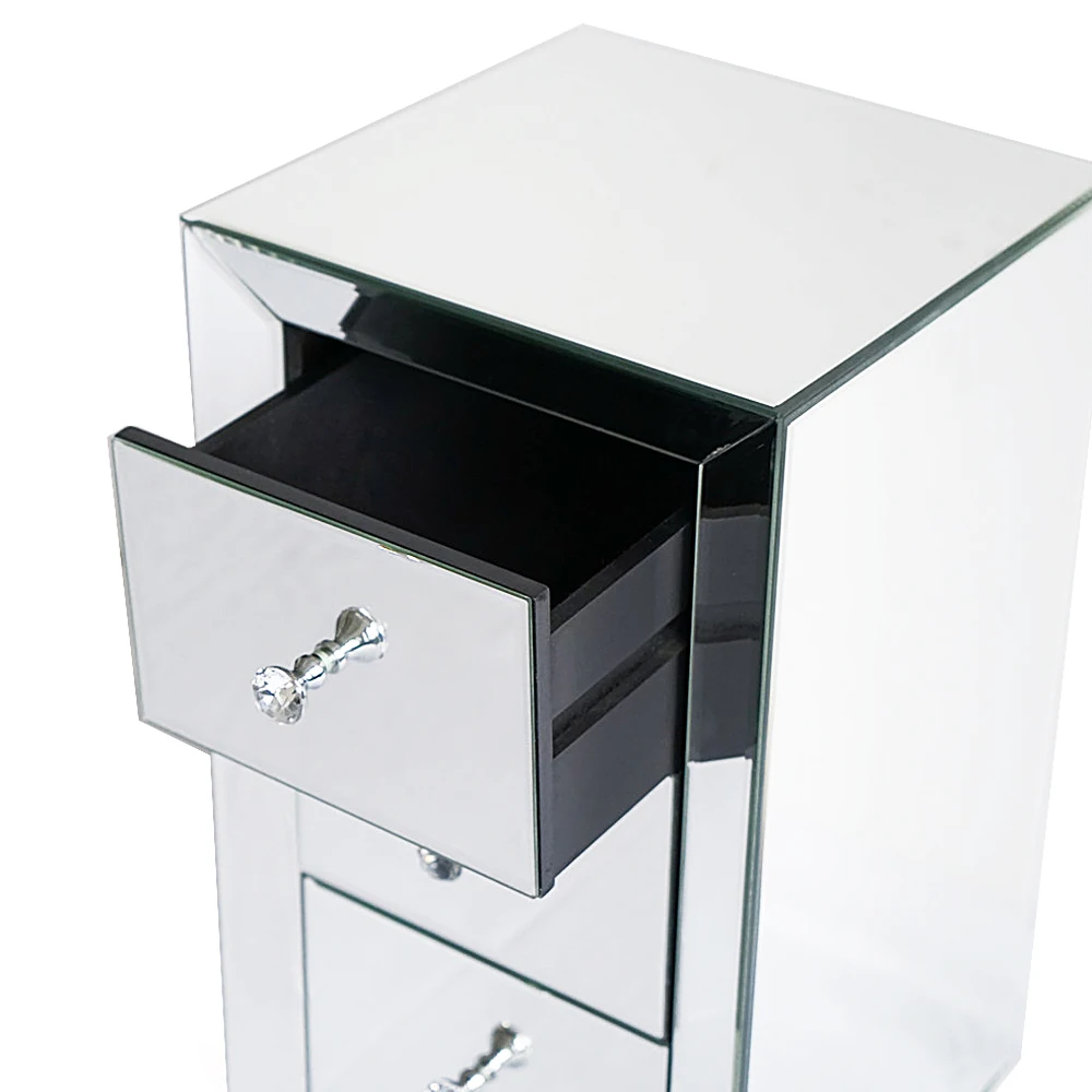Эта уникальная прикроватная тумбочка с зеркалом или прикроватным столиком с тремя ящиками обязательно добавит блеска в вашу спальню. Этот прикроватный шкаф добавит элегантности вашему boudoir с современным поворотом. Зеркальная тумбочка с 3 ящиками выполнена из гладкого и скошенного зеркального стекла. Три просторных выдвижных ящика спереди, каждая из которых оснащена милыми кристальными ручками. Они обеспечивают сдержанный вид, делая ящики доступными. Зеркальная отделка красиво притягивает светильник и создает гламурный, сверкающий вид в вашей спальне.