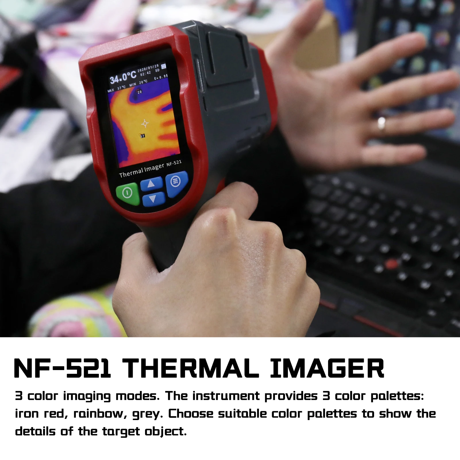 NF-521-это тепловизионная камера, которая сочетает измерение температуры поверхности и тепловизионное изображение в реальном времени. Тепловизор эффективен при преобразовании изображений теплового излучения в изображения видисветильник. В основном используется для диагностики зданий, промышленного обнаружения утечки, электромеханического тестирования и т. д.