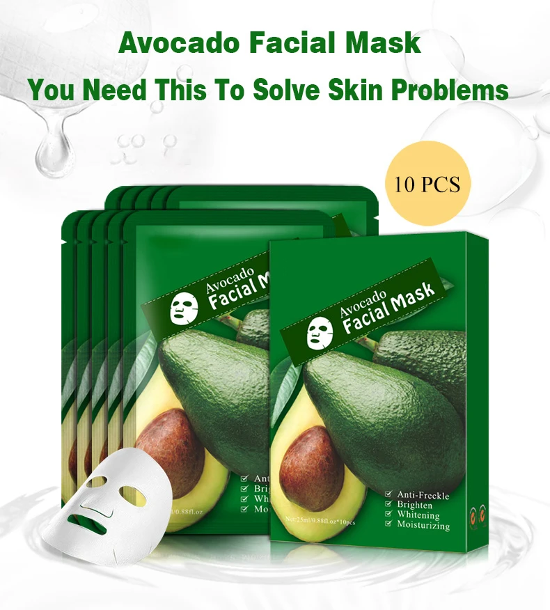 Эффективно: 1. Натуральный Увлажняющий и увлажняющий агент Преимущества местного применения и потребления зеленых и желтых овощей и фруктов уже созданы. Пульпа авокадо и масло авокадо богаты антиоксидантами, такими как B-каротин, лецитин и линолевая кислота, которые питают обезвоженную, шелушащенную и потрескавшуюся кожу. 2. Отбеливание кожи Отбеливание кожи включает в себя больше, чем изменение цвета лица волшебным образом после использования маски для лица. Вам нужно использовать ингредиенты, которые не просто дают вам временное свечение, но улучшают общее здоровье вашей кожи, защищая ее от дальнейших повреждений. Витамины, присутствующие в авокадо, были доказаны, чтобы бороться с злокачественной кожей и восстанавливать ее. Авокадо удаляет омертвевшие клетки кожи, удаляет поры, борется с бактериями, связанными с акне, и меняет здоровье вашей кожи. 3. Уменьшает акне и шрамы Авокадо является противовоспалительным, потому что он содержит лауриновую кислоту и другие питательные вещества, которые действуют как антибактериальные и противовирусные агенты и уменьшают акне и шрамы. Вы можете использовать масло авокадо или маски для лица авокадо, чтобы воспользоваться этими преимуществами. 4. Защита от старения Наша кожа проходит через много повреждений из-за свободных радикалов, загрязнения, воздействия солнца и воздействия UVA и UVB лучей, которые приводят к морщинам, мелким линиям, И потеря эластичности. Витамины Е и Ф и незаменимые жирные кислоты, присутствующие в фруктах, таких как авокадо, замедляют образование морщин. Он также содержит антиоксиданты, такие как лютеин и зеаксантин, которые, как известно, защищают вас от признаков старения. Использование: Эта листовая маска авокадо 10 упаковок идеально подходит для обеспечения влаги и питания для вашего лица. Авокадо упакованы витаминами C & E, а богатые жирные кислотные масла содержат калий, лецитин и многие другие питательные вещества, которые идеально подходят для питания и увлажнения вашей кожи. Авокадо являются относительно новыми ингредиентами корейского общества по уходу за кожей, но не ошибитесь, эти питательные суперпродукты растут и набирают популярность. Настоятельно рекомендуется для тех, кто нуждается в увлажнении, питании и улучшении кожного барьера. Совместим со всеми типами кожи и наиболее эффективен при использовании в качестве 7-го шага по уходу за кожей K-beauty.