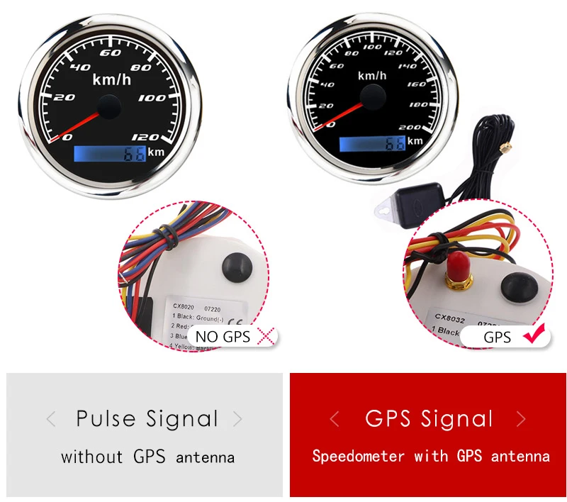 Дальность индикации: 0-30 км/ч, 0-60 км/ч, 0-120 км/ч, 0-200 км/ч.