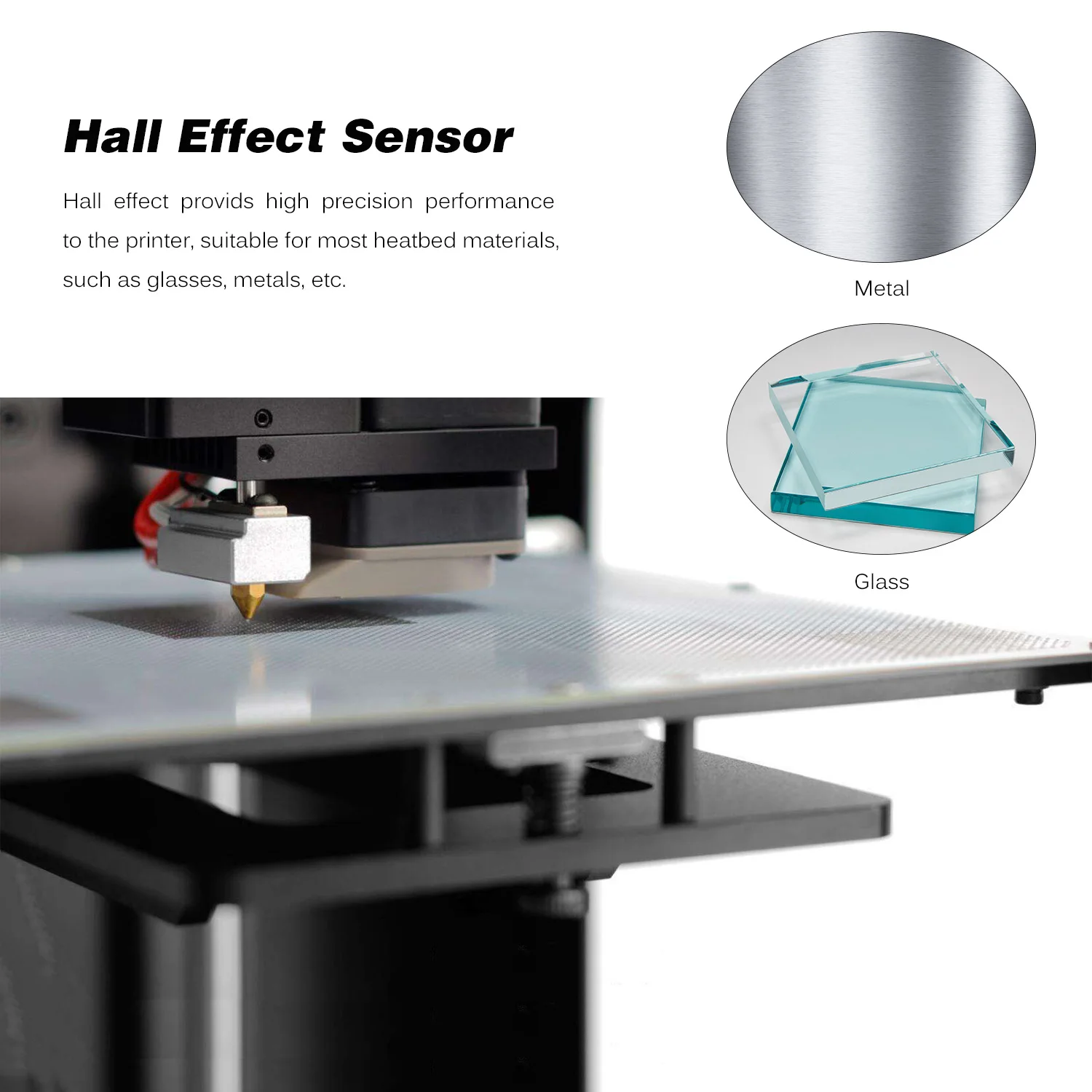 Эффект Холла обеспечивает высокую точность работы принтера, подходит для большинства тепловых материалов, таких как очки, металлы и т. д.