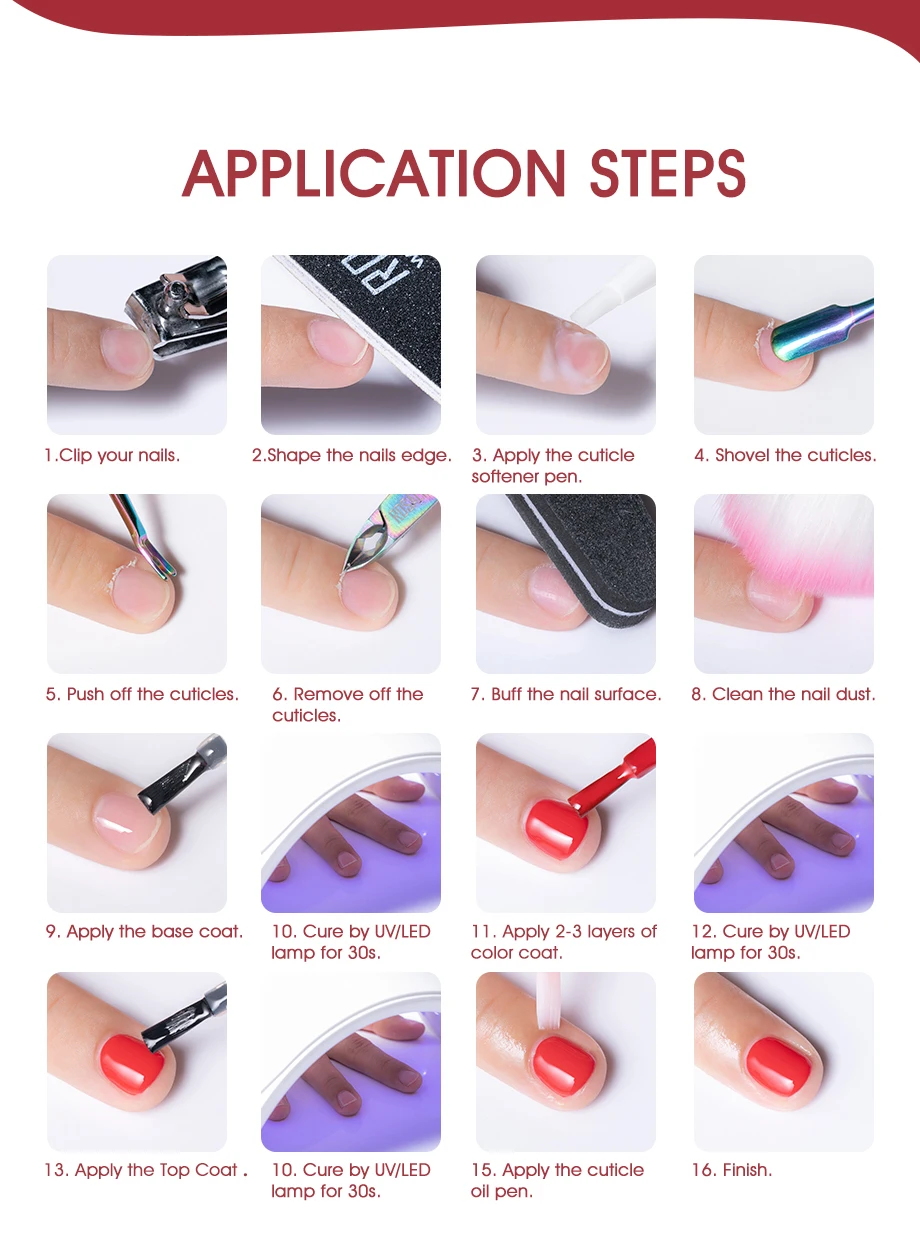 -6. Удалите липкий остаток на ногтях с помощью очищающего средства. Затем нанесите питающее масло кутикулы для увлажнения влаги в кутикулу и кожу вокруг ногтя.