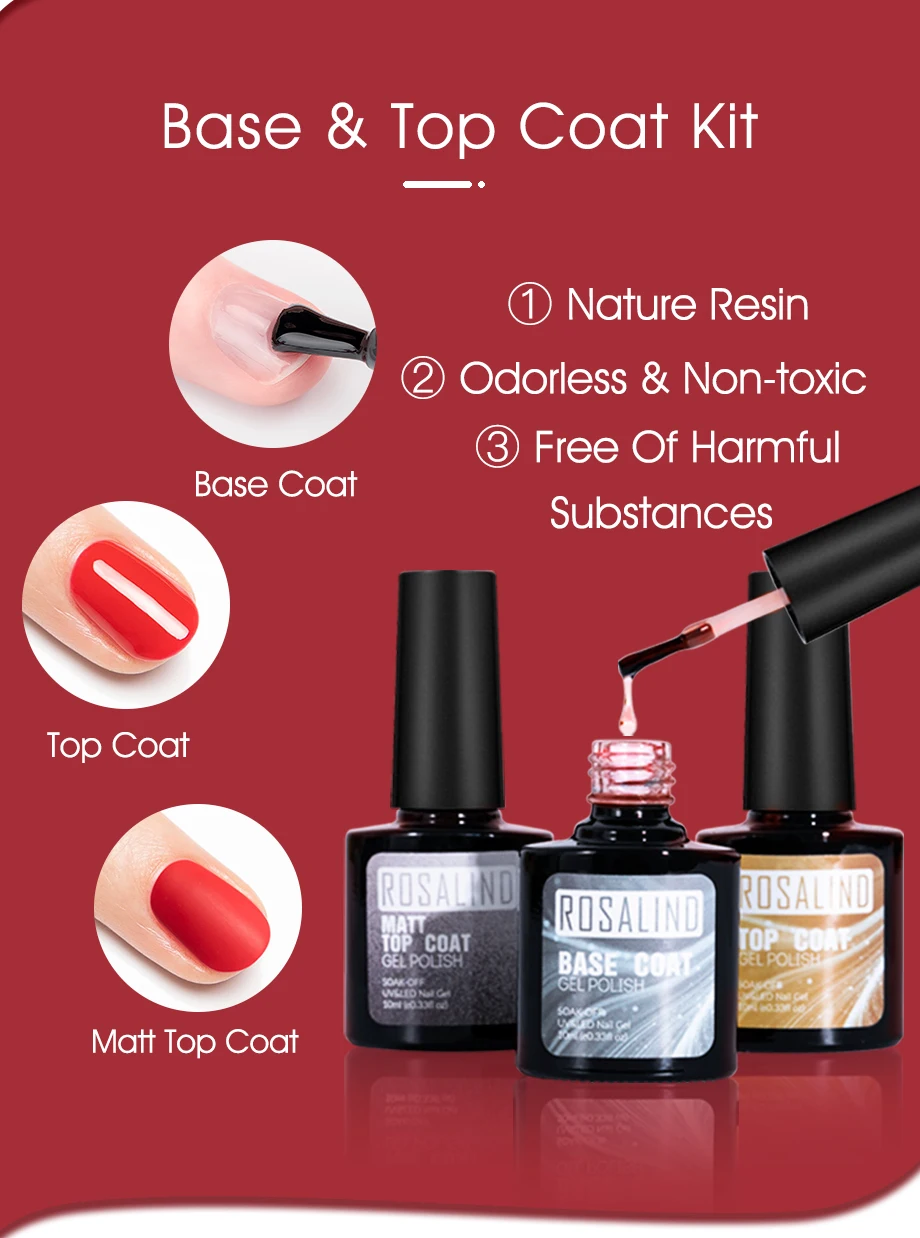 Розалинд 7 мл био-Гели Soak Off 2/4/6/12/24 шт. Гель-лак яркий для дизайн ногтей светодиодный/УФ-лампа