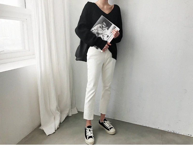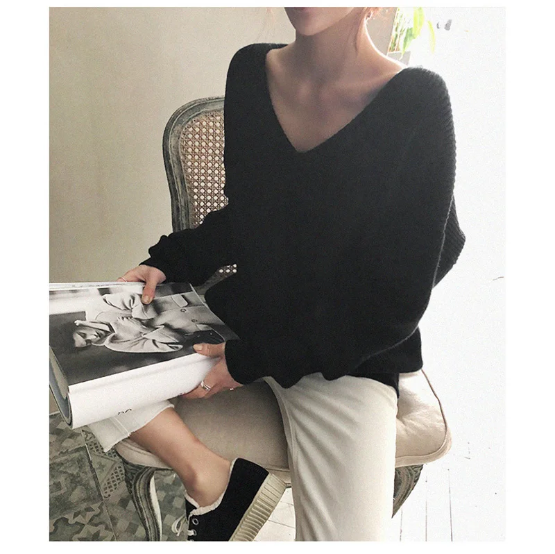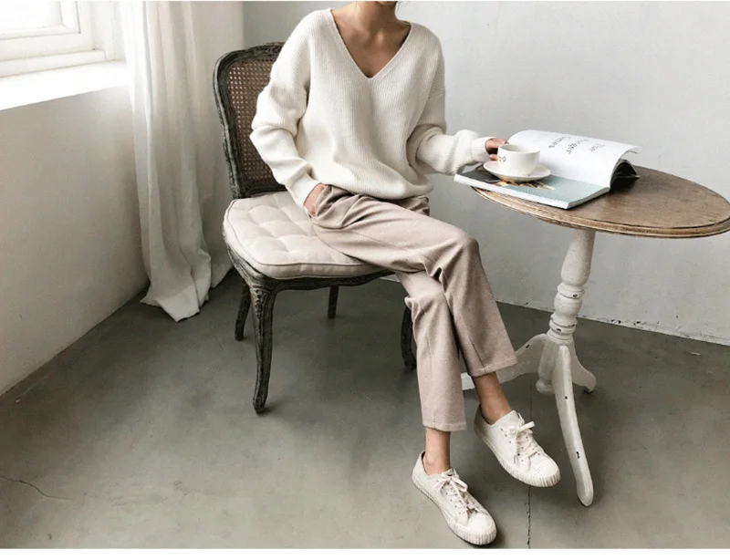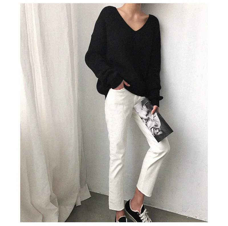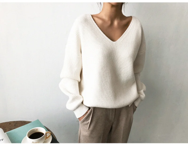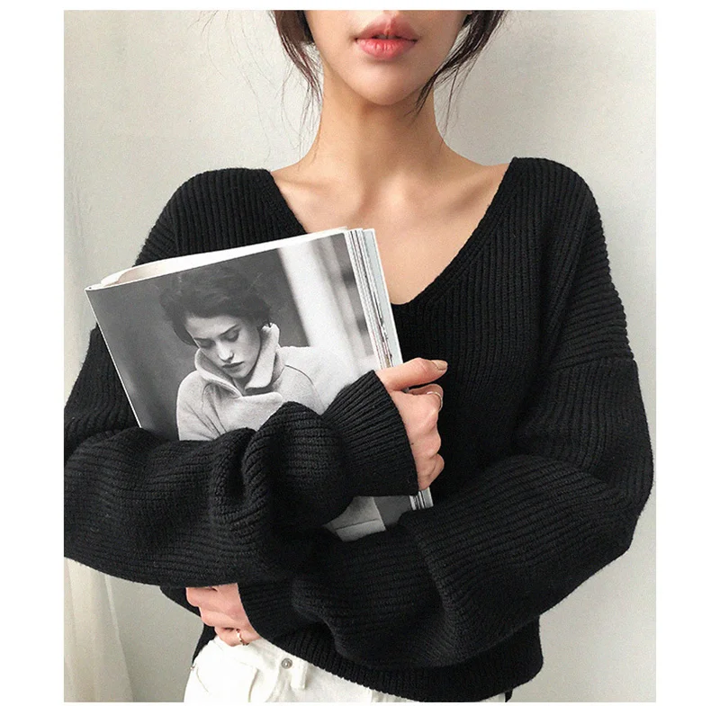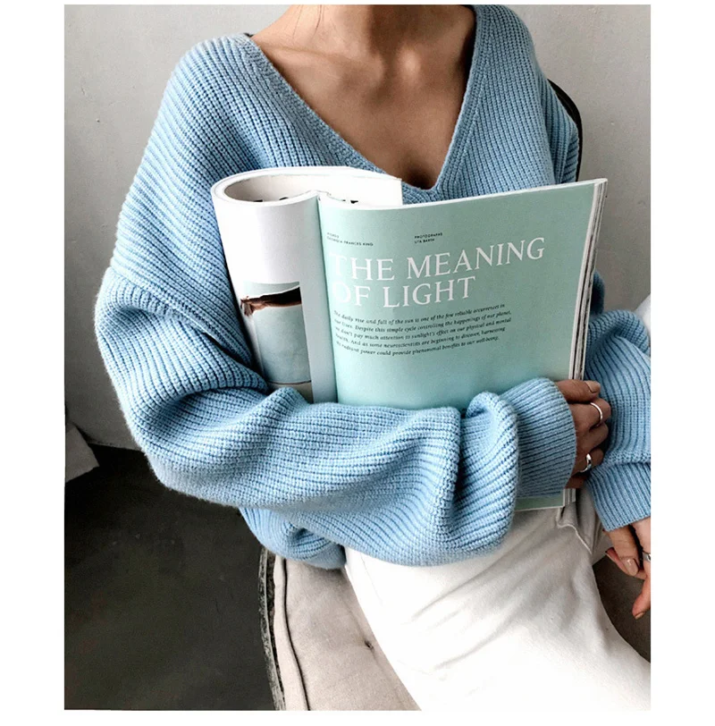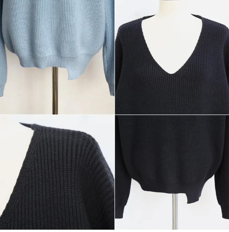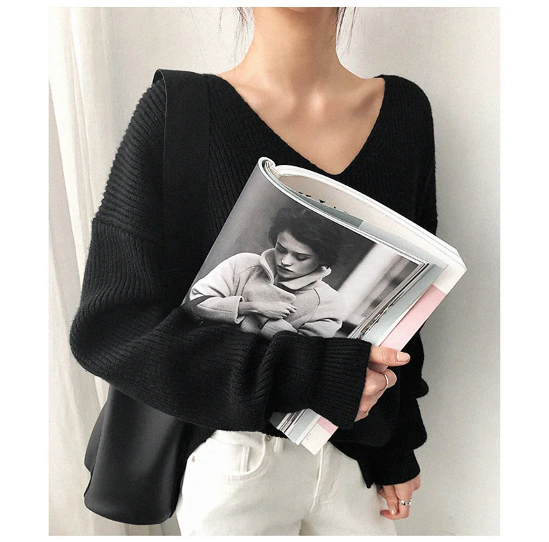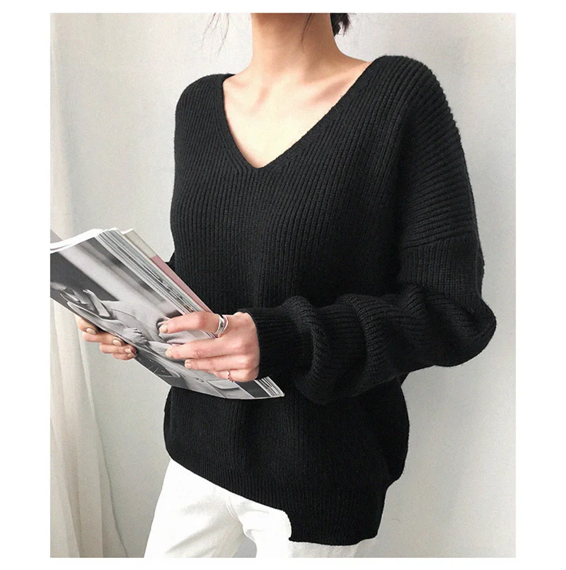 2021 весна осень длинный рукав свитер женский v-образный вырез базовый однотонный пуловер женский корейский Стиль Повседневный вязаный свитер Топ