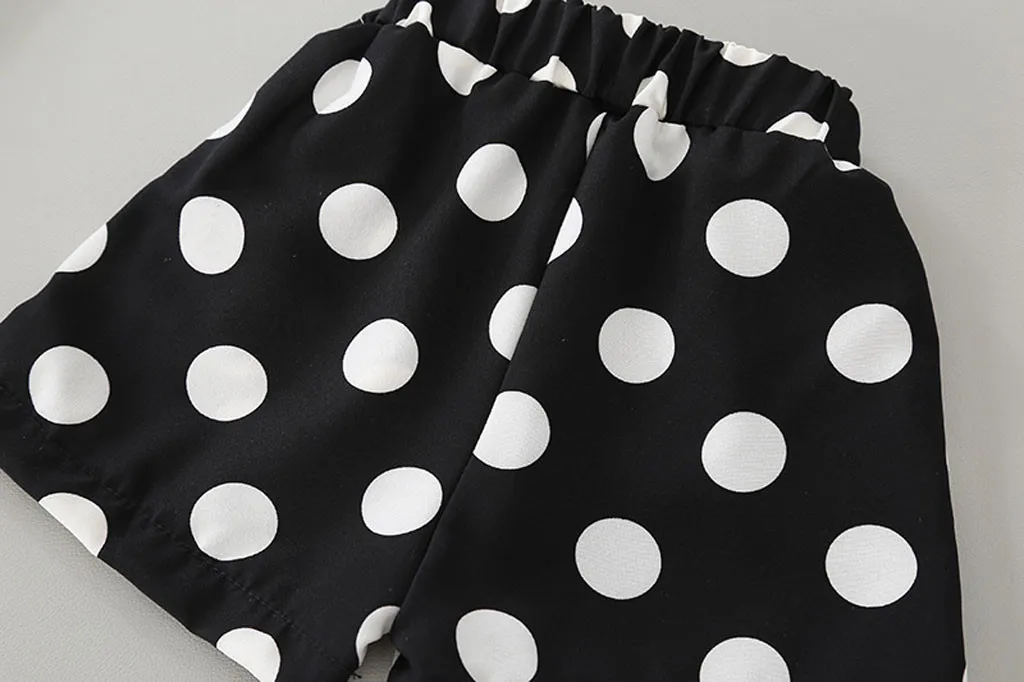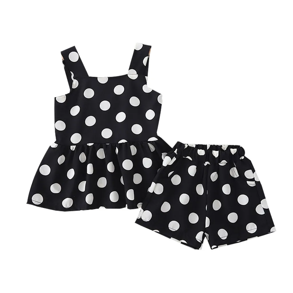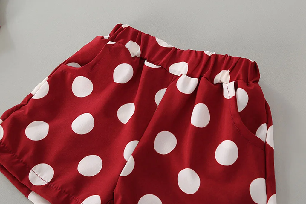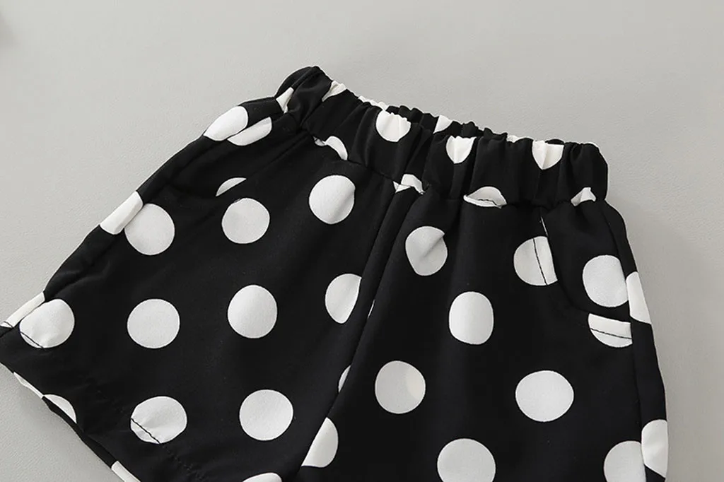 Одежда для маленьких девочек топы с подтяжками и принтом в горошек для маленьких девочек, платье-футболка с шортами детская одежда