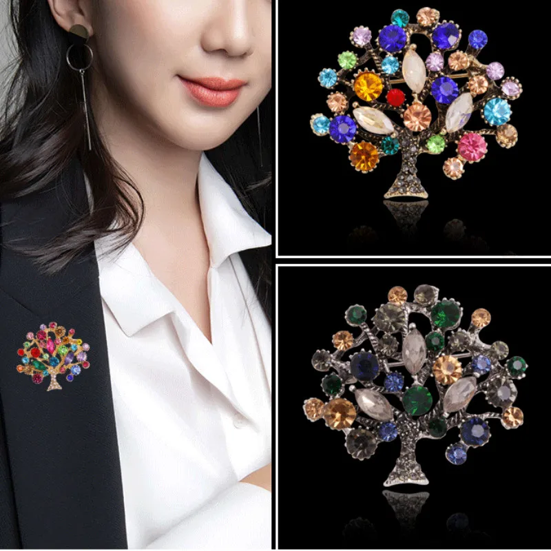 Модная разноцветная брошь в виде дерева жизни, стразы, булавка с отворотом, элегантная женская Роскошная бижутерия, броши для женщин, аксессуары