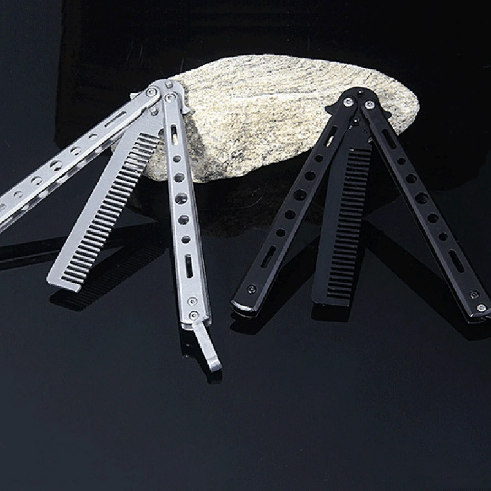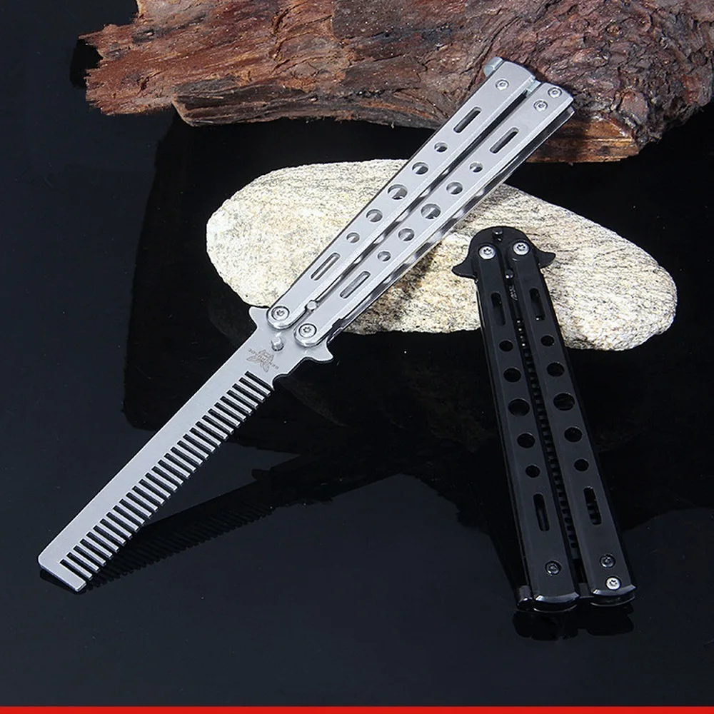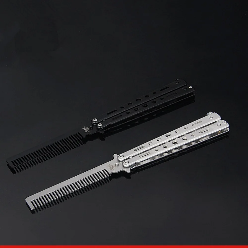 Нож-бабочка расческа из нержавеющей стали складной тренировочный гребень Борода Усы Кисти бабочка нож парикмахерский инструмент для укладки