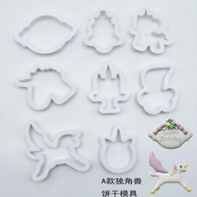 Тип: форма для печеньяМатериал: пищевой пластикРазмер: как показано на фотографииФорма: серия ЕдинороговПрименение: торт diy, бисквитная форма, пекарня, кухняПосылка включает в себя:8 x форма для резки печенья