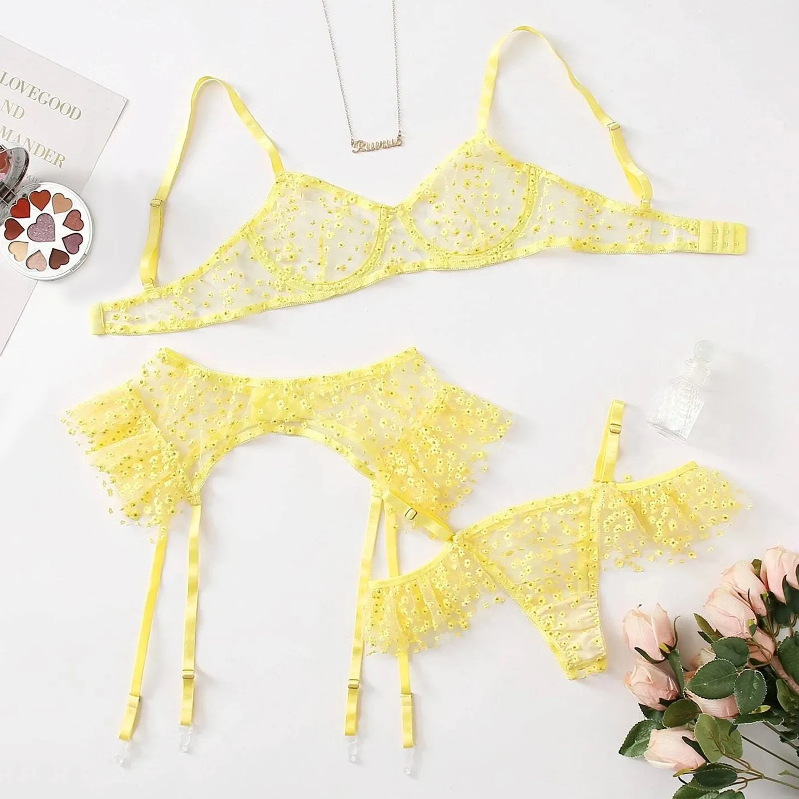 Что вы получаете: 1 комплект для женщинНижнее белье (1x стальной кольцевой бюстгальтер 1x пояс для подвязки 1x стринги)