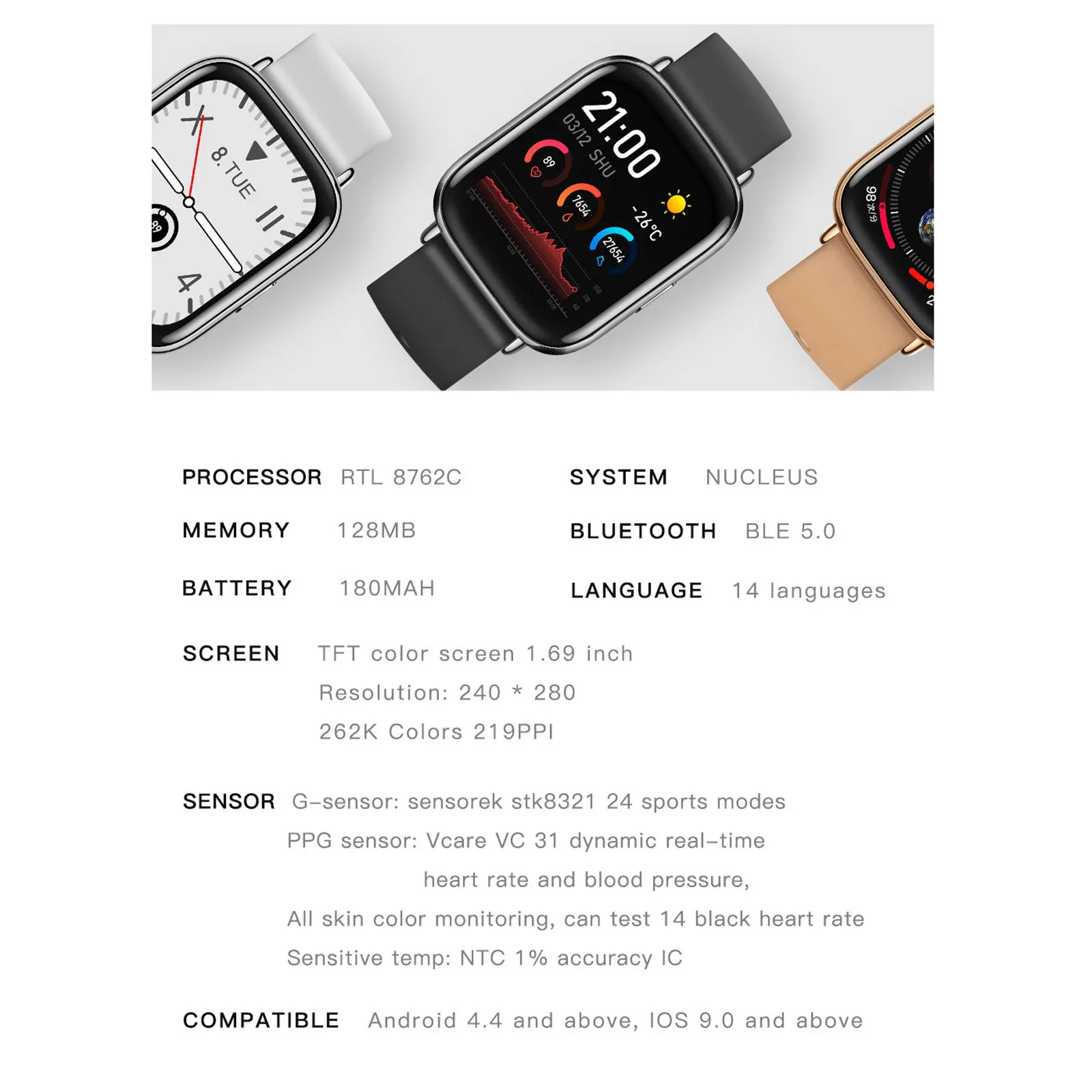 Умные часы 1,69 "экран UM68 температура тела IP67 водонепроницаемый спортивный режим сна Монитор