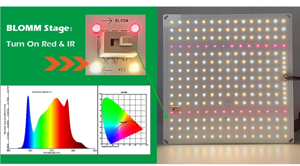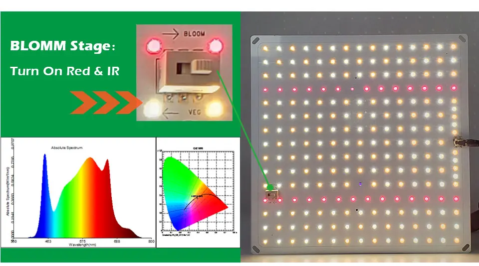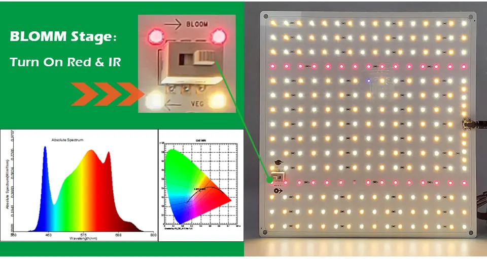 Этап цветения: Включите глубокий красный и ИК (660nm и 730nm)