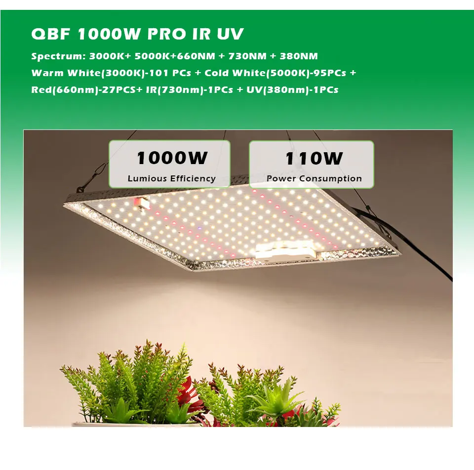7. Рекомендуем выбирать QBC800 IR UV или QBC850 PRO IR UV,QBF1000 PRO IR UV, более мощный с высоким PPFD