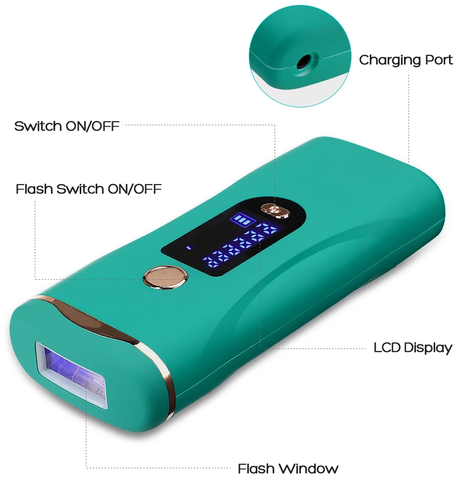 Технология: Интенсивный Импульсный светильник (IPL) Материал: АБС-пластик Цвет корпуса: зеленый (как на изображении) Тип штепсельной вилки: штепсельная вилка стандарта США/штепсельная вилка европейского стандарта (опционально) Светильник уровня интенсивности: 9 уровней Пульс: 999999 шт Длина волны: ≧ 530nm Номинальное напряжение: 100-240 В Входная мощность: 36 Вт Светильник с волнистым покрытием Размер: 3*1 см (3 см2) Метод электропитания: подключаемый Рабочая среда: температура: -10 ℃ ~ 35 ℃, влажность: 30% ~ 75% Размер: прибл. 16,3*7*3 см/6.41x2.75x1.18inch