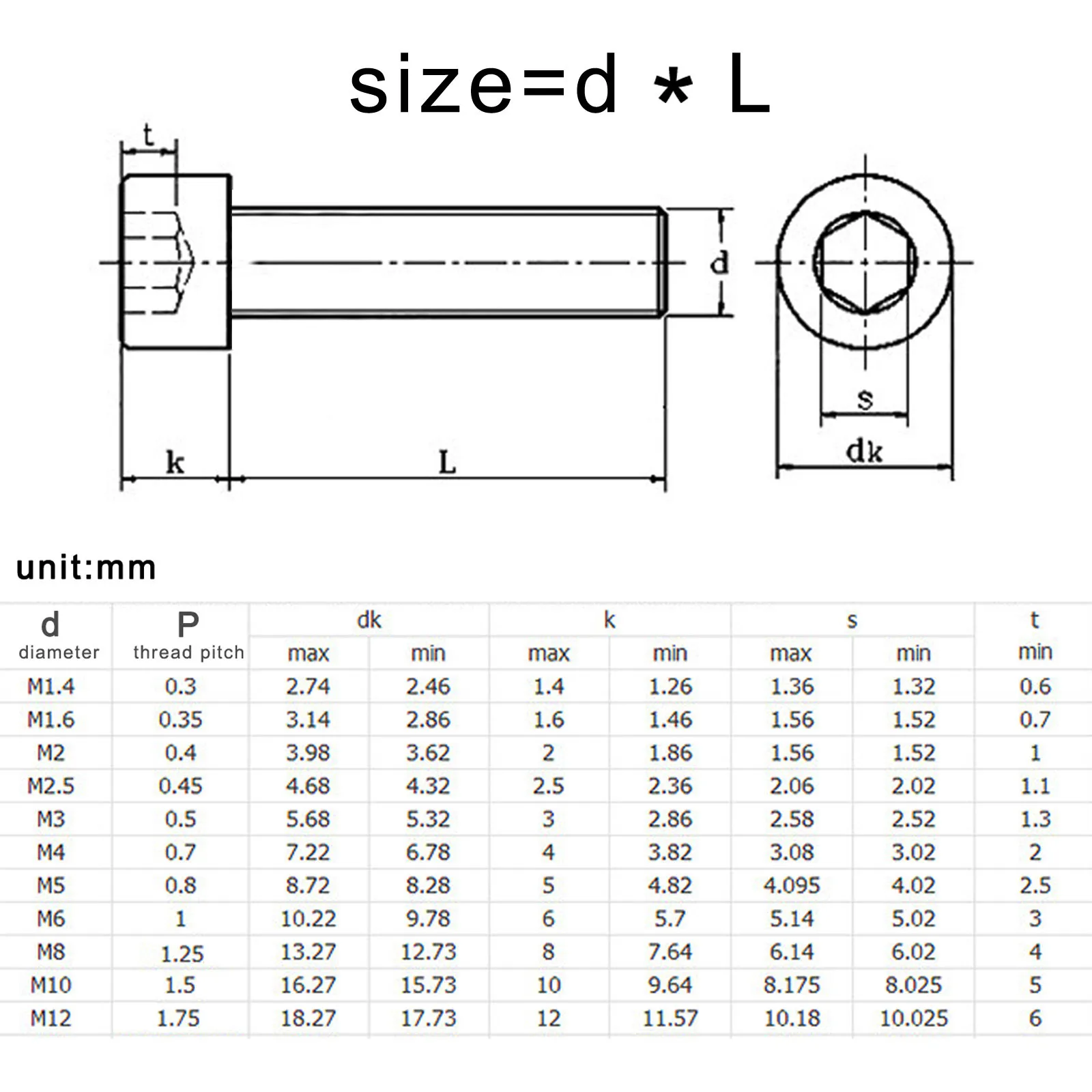 0,3 мм (M1.4) /0,35 мм (M1.6) /0,4 мм (M2) /0,45 (M2.5)