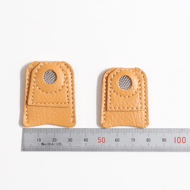 Название продукта: кожа наперсток Материал изделия: высококачественная овечья кожа Характеристики продукта: дышащий, приятный для кожи, мягкий и водонепроницаемый Примечание: большой размер: 4,2 см в высоту, 3,3 см в ширину и весит около 2,8 грамм Внутренний слой: 3,8 см в высоту, 3,1 см в ширину, и весит около 2,5 грамм Как выбрать правильный размер? Костяшки пальцев Ширина является необходимой для проведения измерений, маленький размер рекомендован для 1,3-1,5 см, большие размеры рекомендуется для 1,5 см-1,8 см