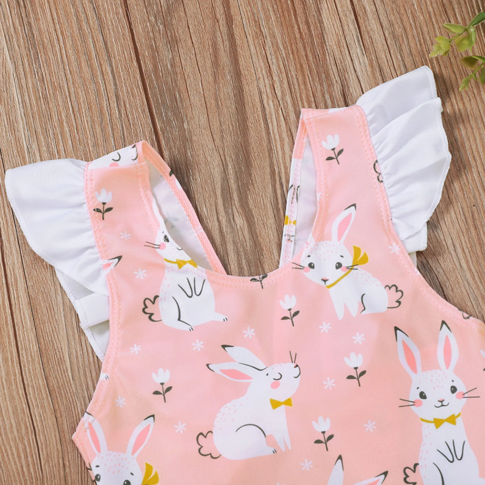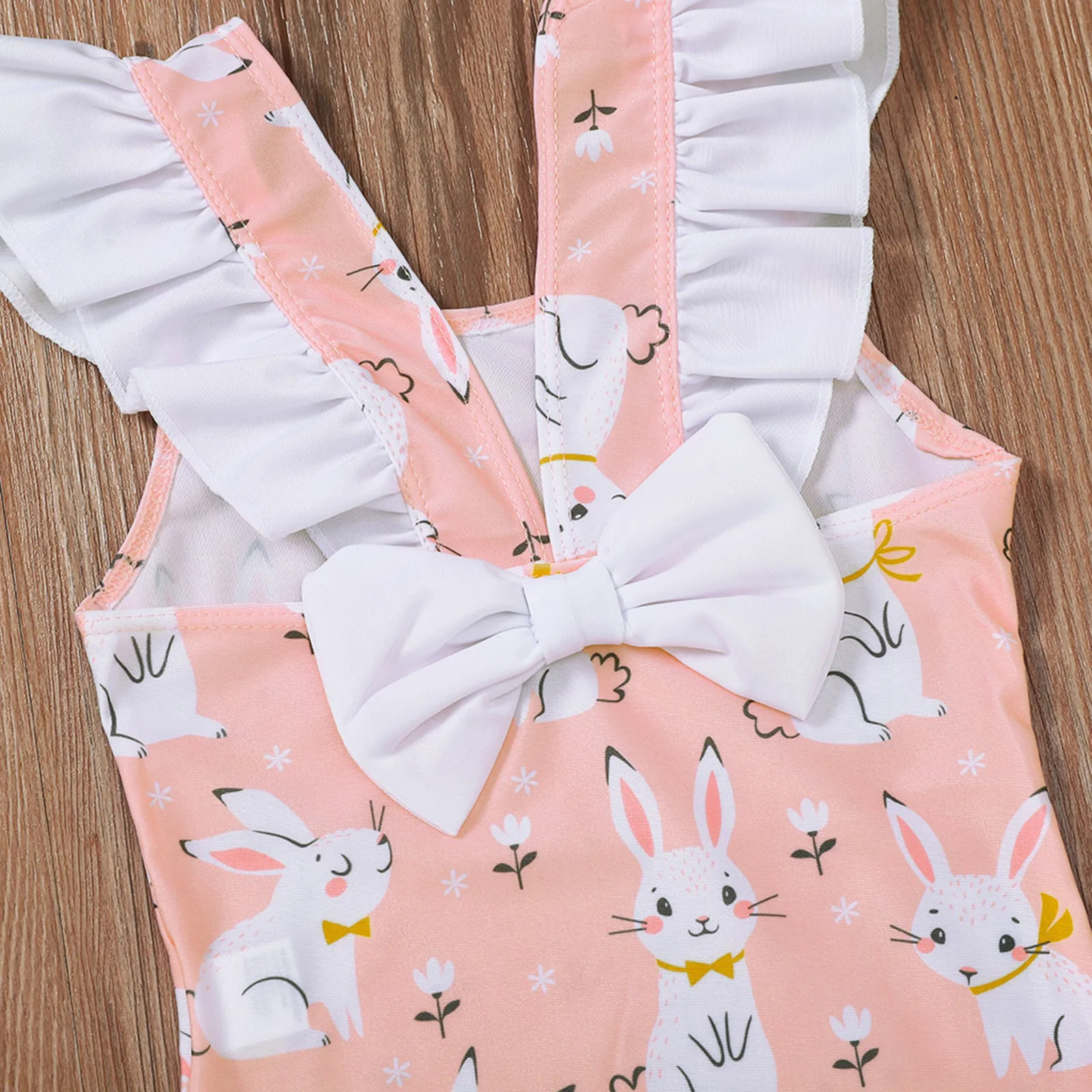 Цельный купальный костюм с принтом кролика для маленьких девочек; Пляжная одежда