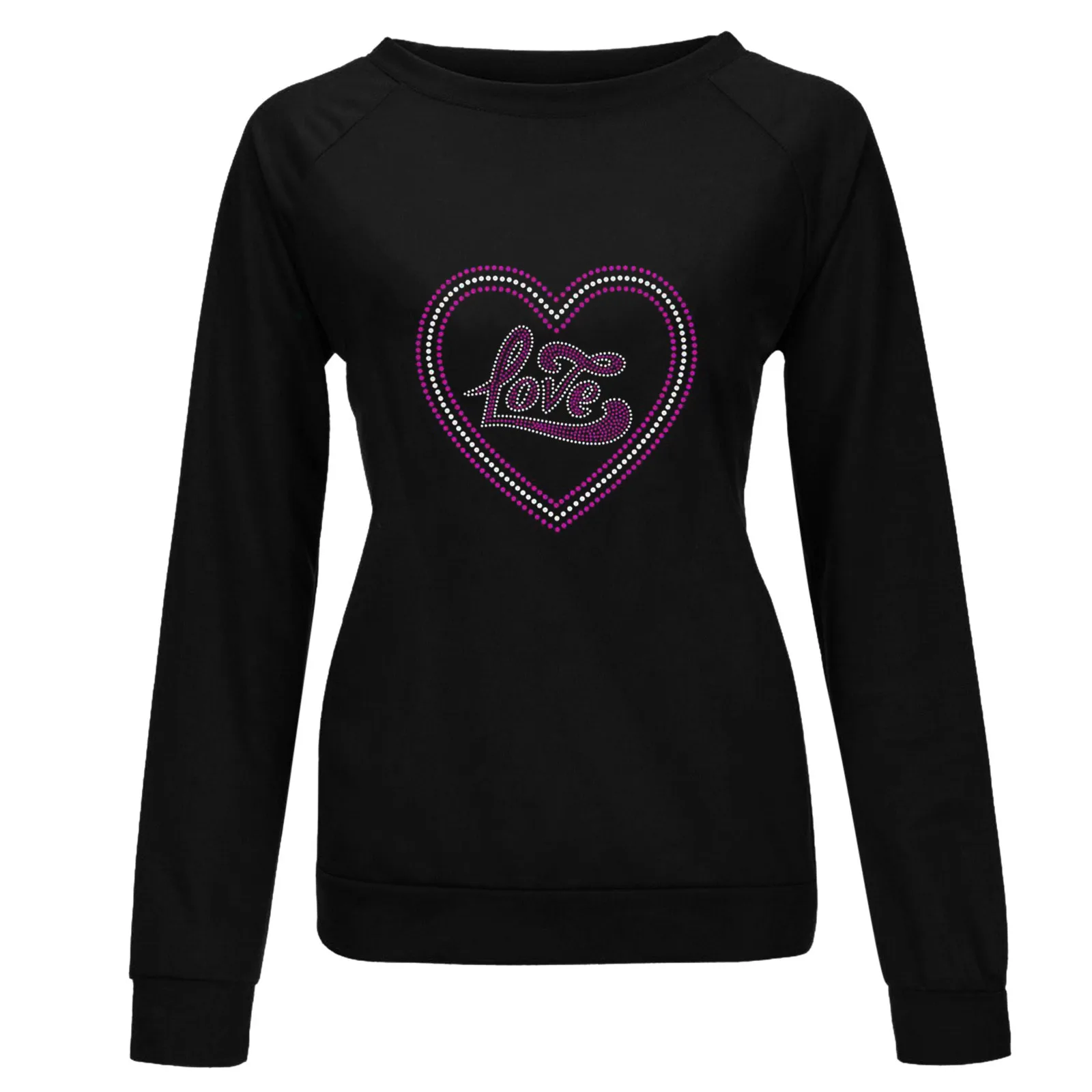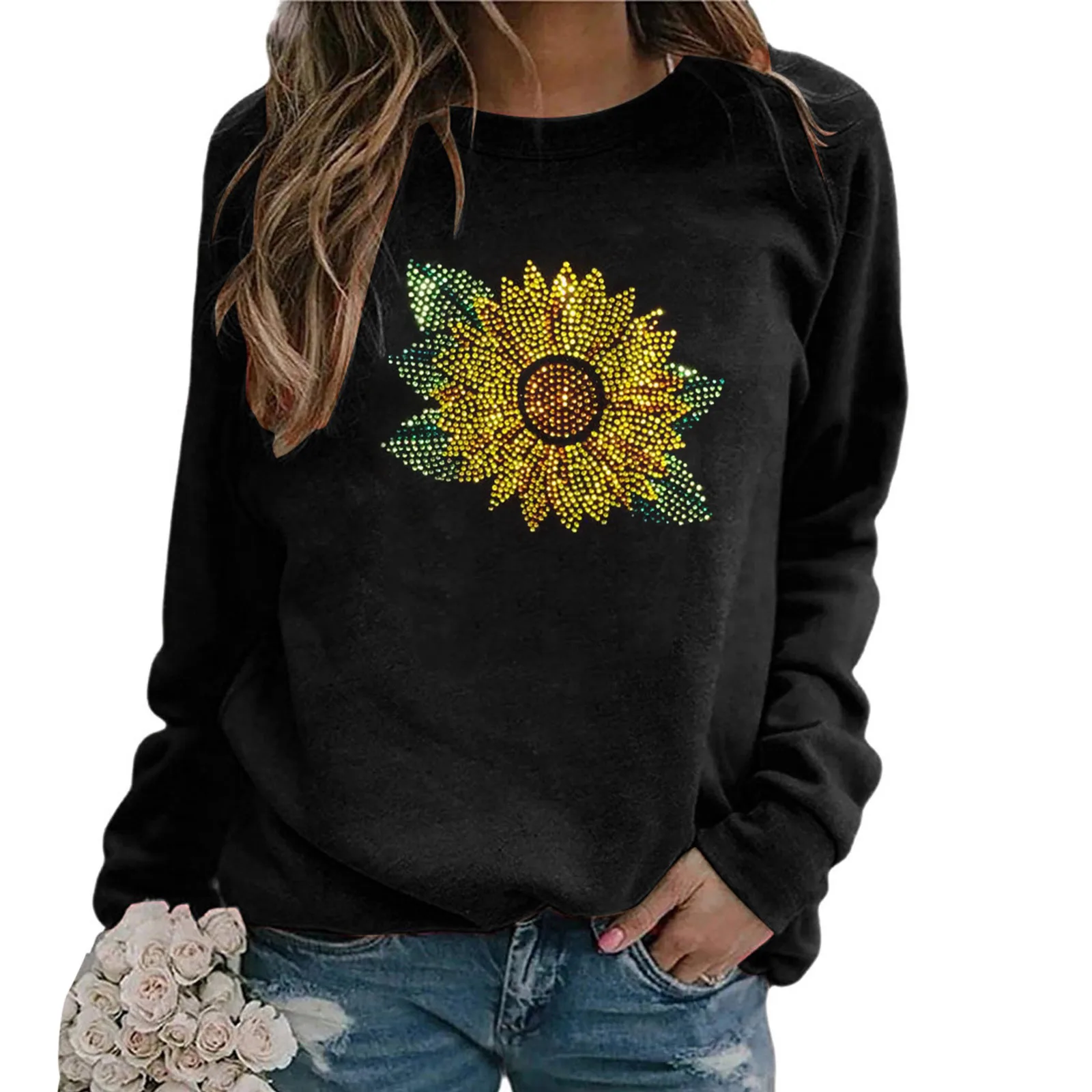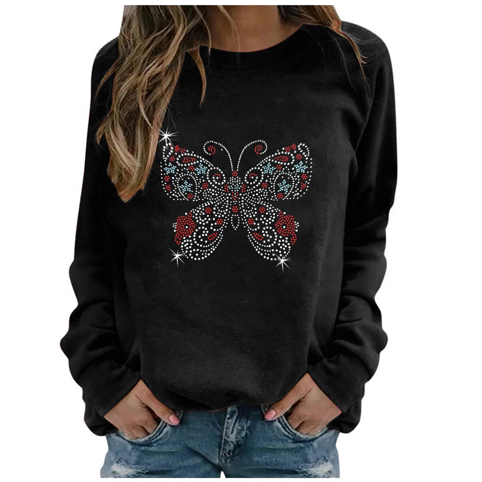 Модная женская повседневная одежда с О-образным вырезом, стразы топы с длинными рукавами; Футболка