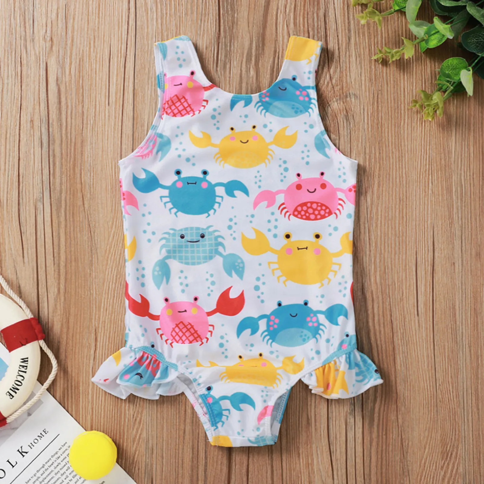 Купальник-бикини для маленьких девочек с рисунком из мультфильма; Цельный купальник; Пляжная одежда