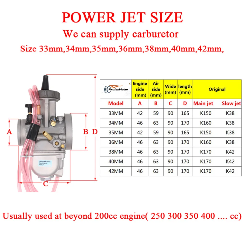 Для Keihin Pwk 33-36, 38, 40, 42 мм мотоцикл CarburetorCarburetor 4 тактный двигатель гоночный Запчасти скутеры Байк с Мощность Jet