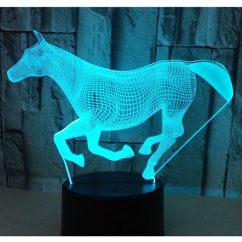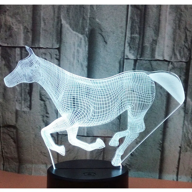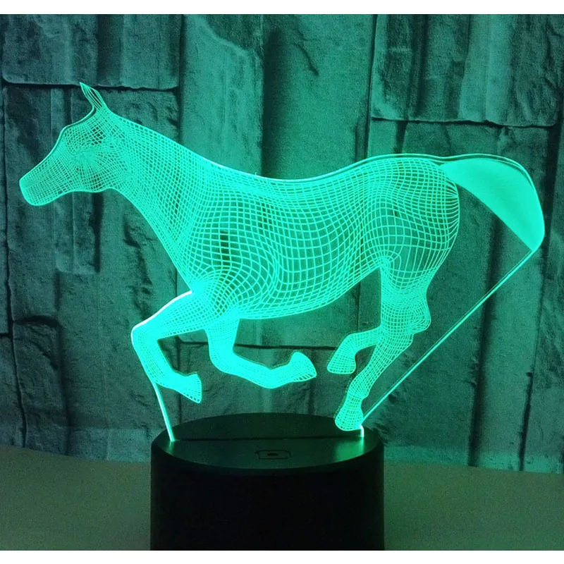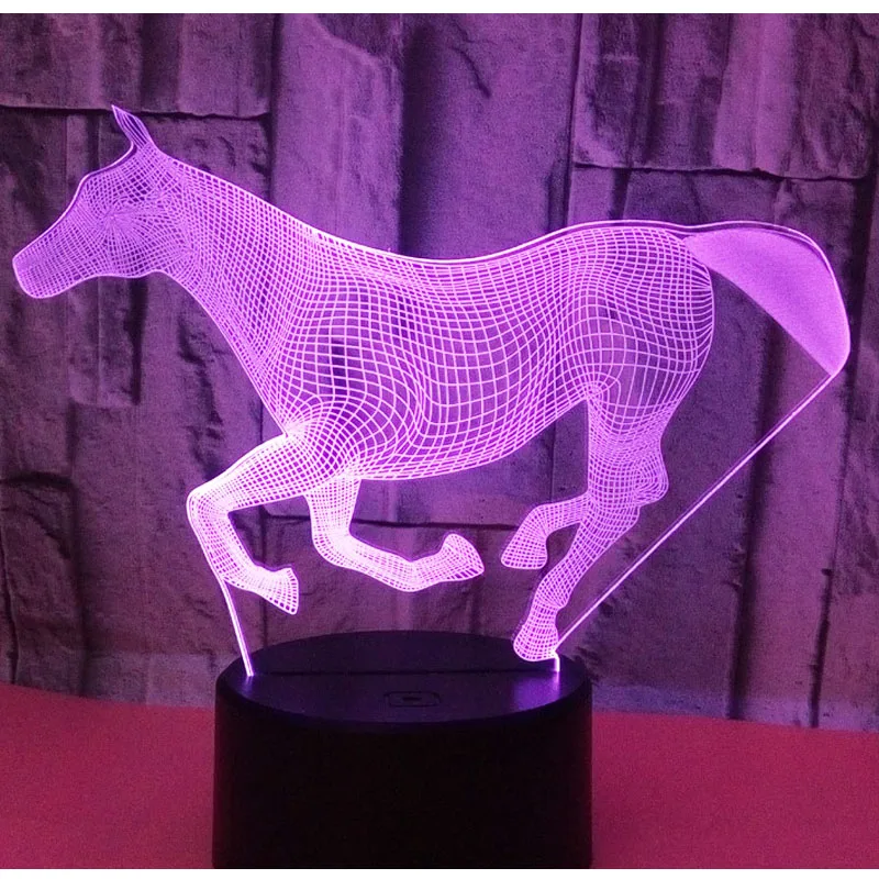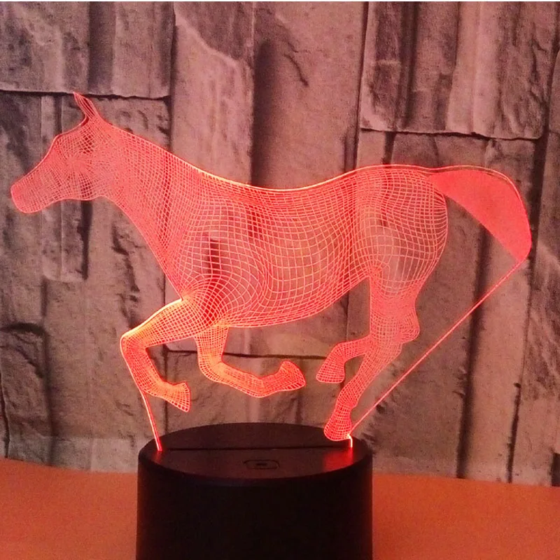 Потрясающий 3D светодиодный светильник для бега в форме лошади, светодиодный ночник с 7 волшебными цветами