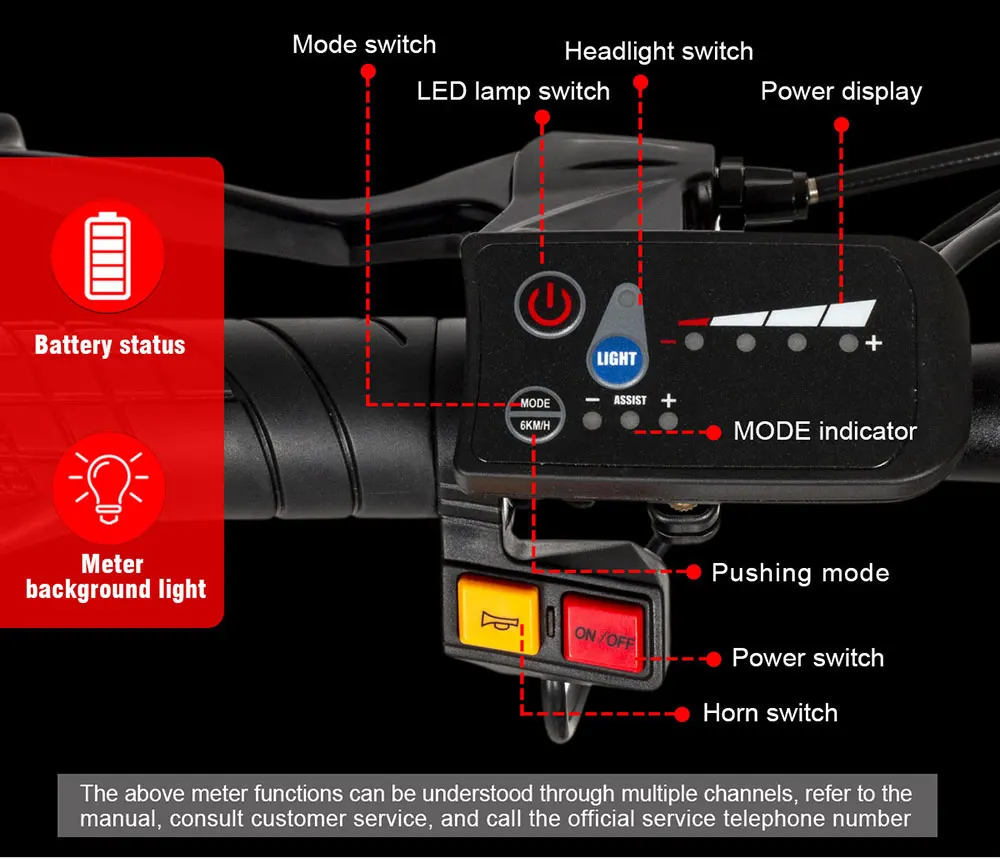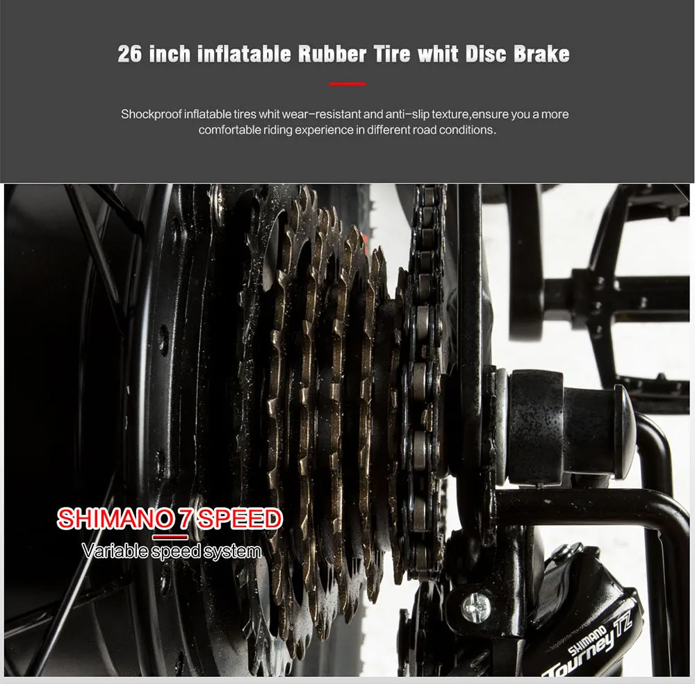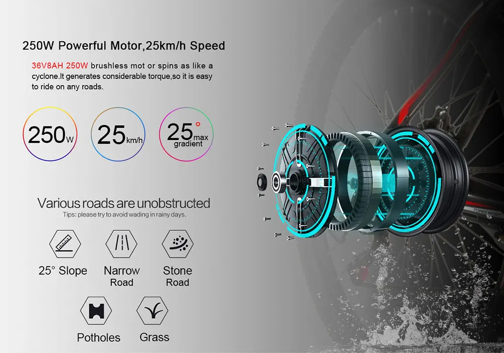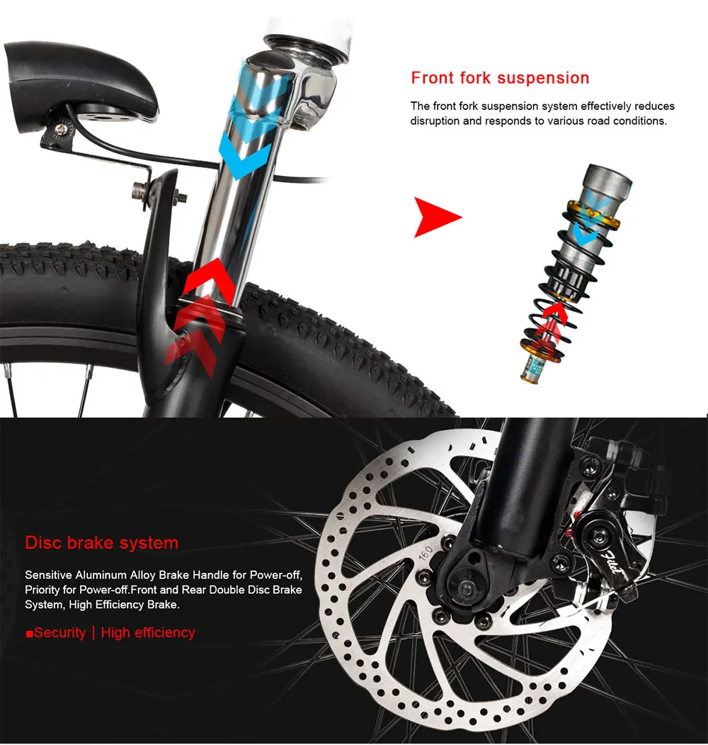 Передняя вилка подвески и 7 переменной скорости системы для борьбы с грубыми дождями и подъемом.