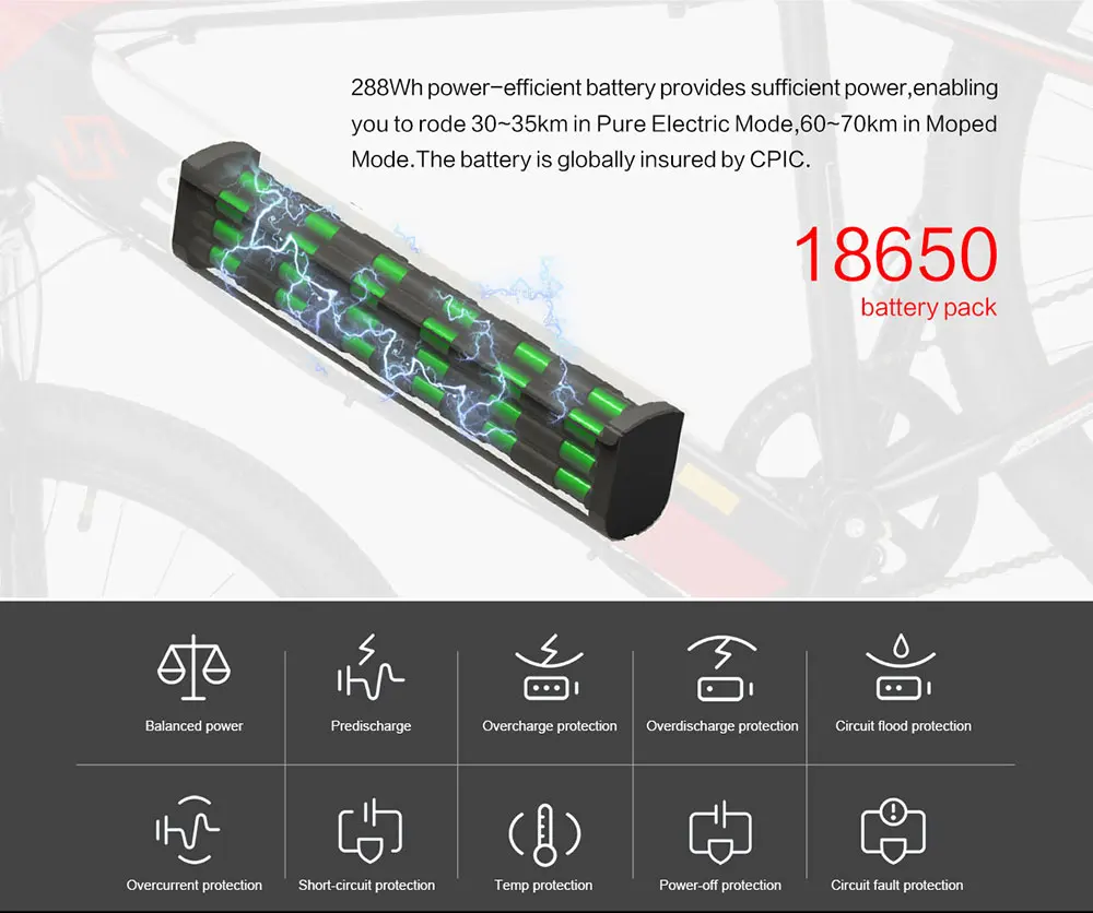 Литиевая батарея 8AH обеспечивает диапазон 30 - 35 км в чистом электрическом режиме, диапазон 60 - 70 км в режиме помощи питанию.