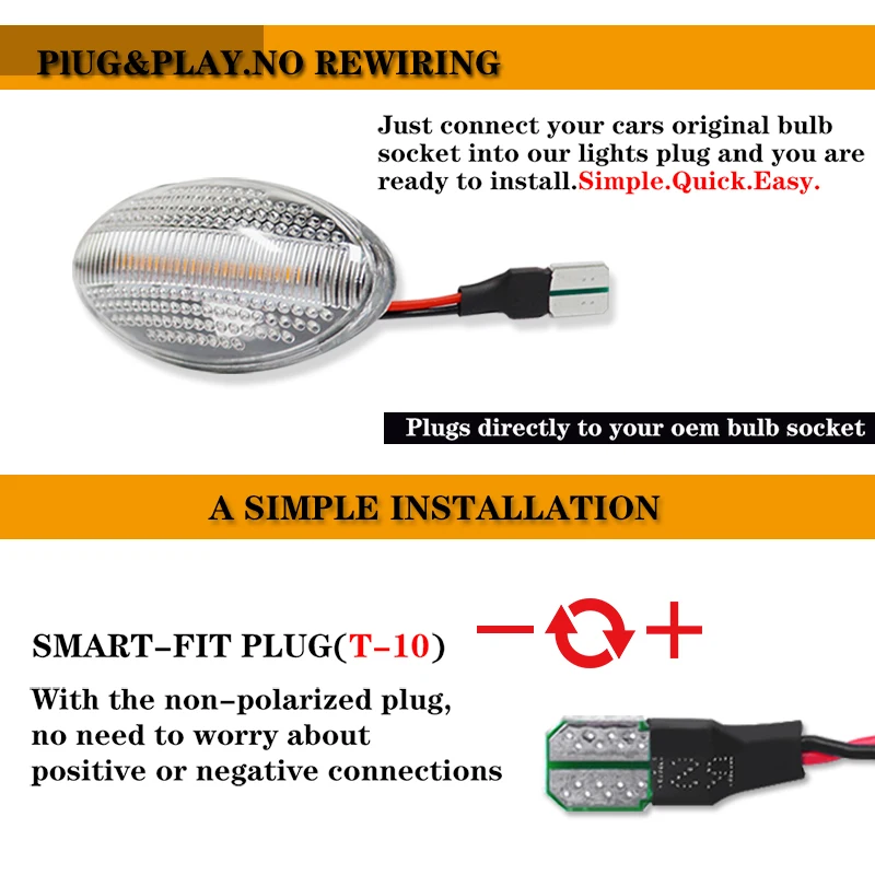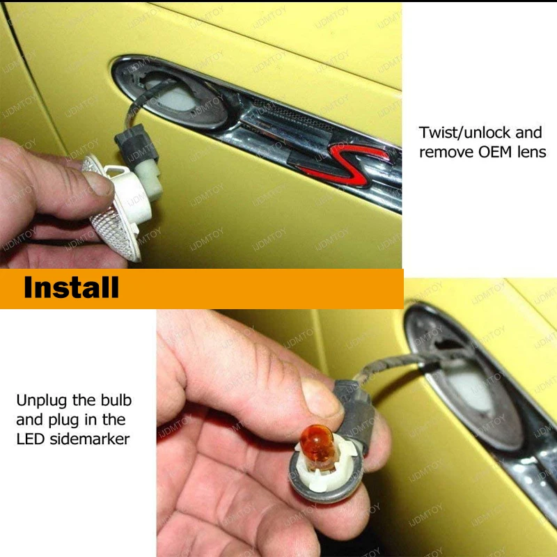 Want to give your MINI a unique and clean look with improved safety and style? Your package will include one pair of driver and passenger front side marker lamps with a clear white cover lens. Each piece is powered high power amber SMD LED diodes to form a perfect focal strip with a super bright lighting output. The LED side marker lamps are a direct plug and play installation. Give your MINI Cooper a modern LED appearance with enhanced safety & visibility at night!