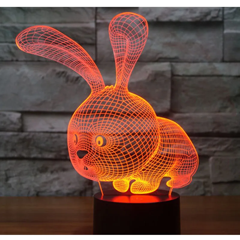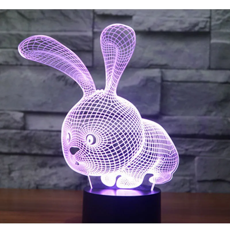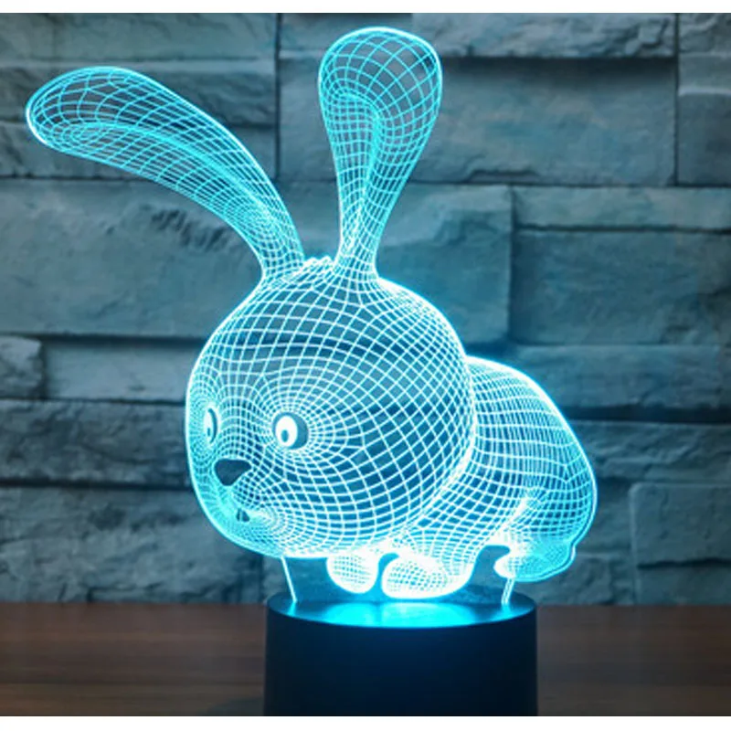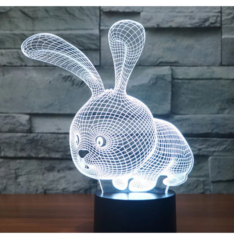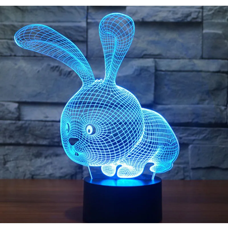 Удивительная 3D светодиодный ная лампа в форме маленького кролика светодиодный Светодиодные ночные светильники с 7 волшебными цветами