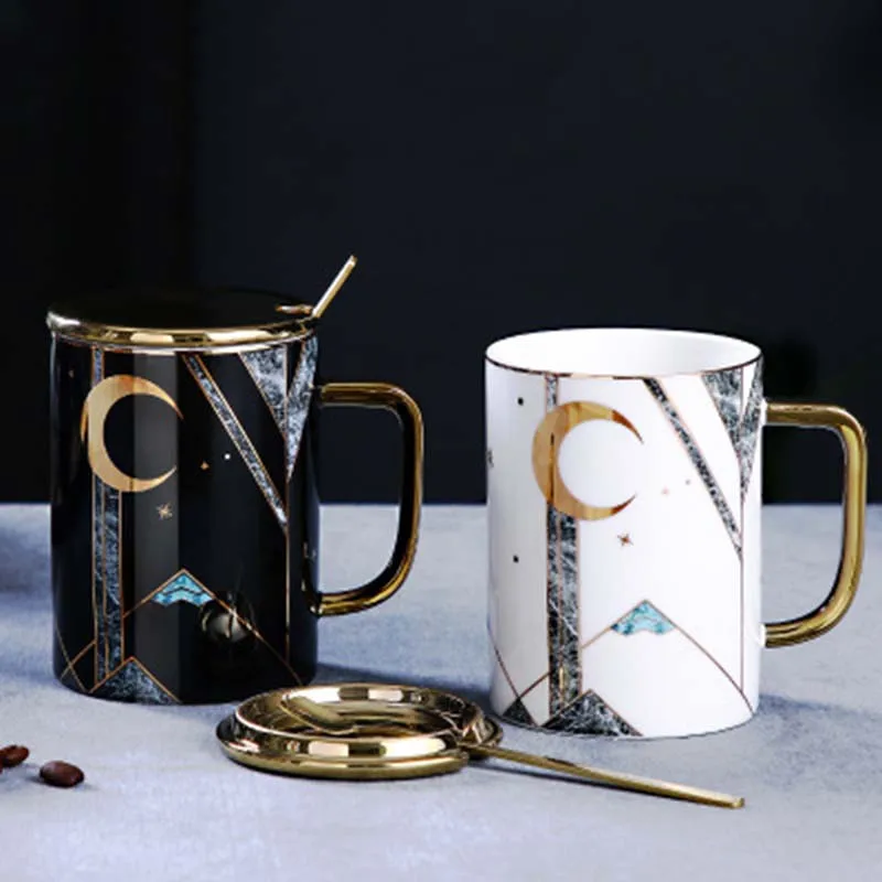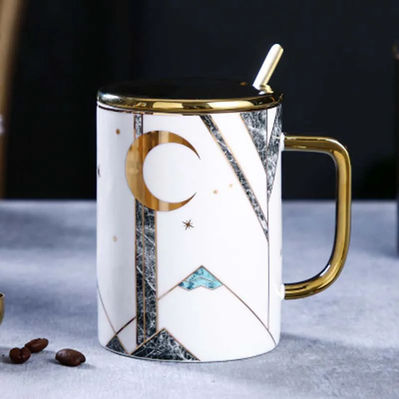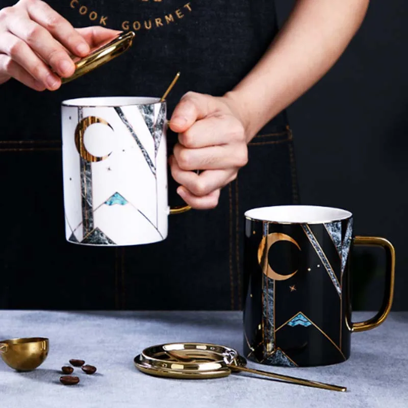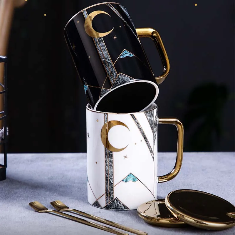 Стиль: светильник, роскошная окрашенная Золотая мраморная кружка с крышкой