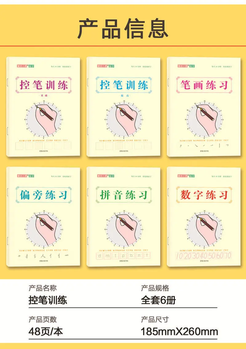 Тетрадь для обучения обучению 6 детских ручек, тетрадь для учеников для начинающих, канцелярские принадлежности для младенцев