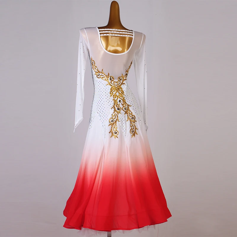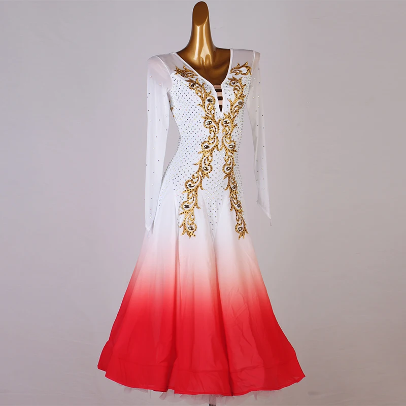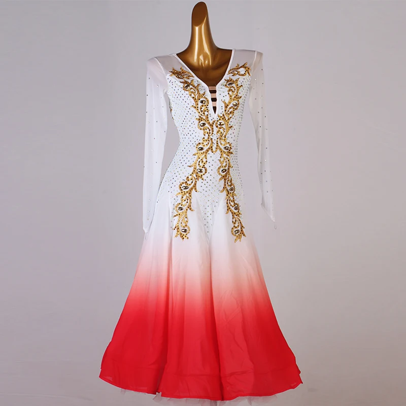 CACARE платья для конкурса бальных танцев женское платье вальс стандартные платья для танцев на заказ D0811 стразы с длинным сетчатым рукавом с большим подолом