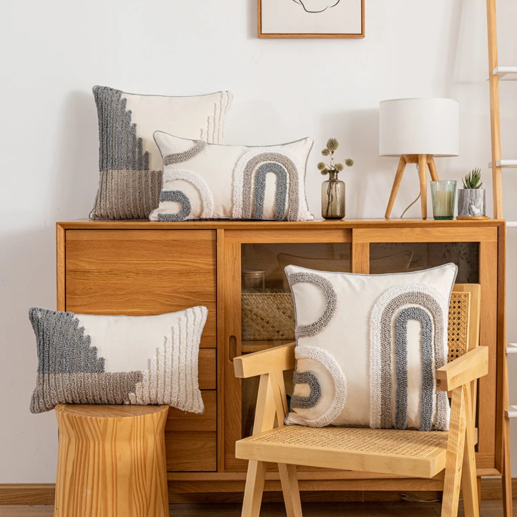 Новая ворсовая техника, мягкая и прочная. Геометрический рисунок. Хлопковая ткань, бежевого цвета. Просто, естественно и стильно.