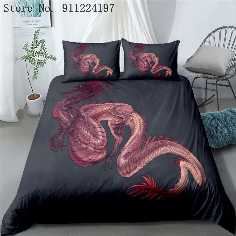 Набор постельного белья с 3D принтом летящего дракона, пододеяльник с наволочкой, удобная Простыня из микрофибры, двуспальный Размер