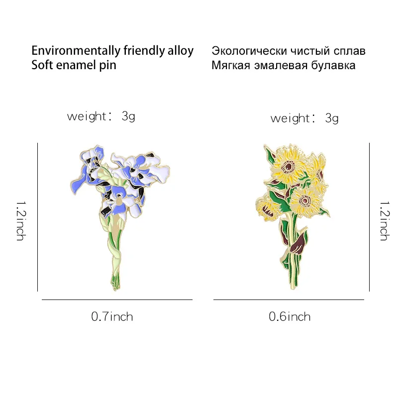 Значок на лацкан Ван Гог Подсолнух Ирис брошь цветок шляпа булавка Металл для одежды эмалированные булавки значки для рюкзака Подарки для женщин