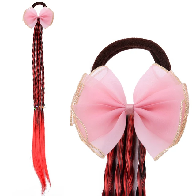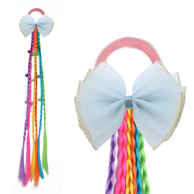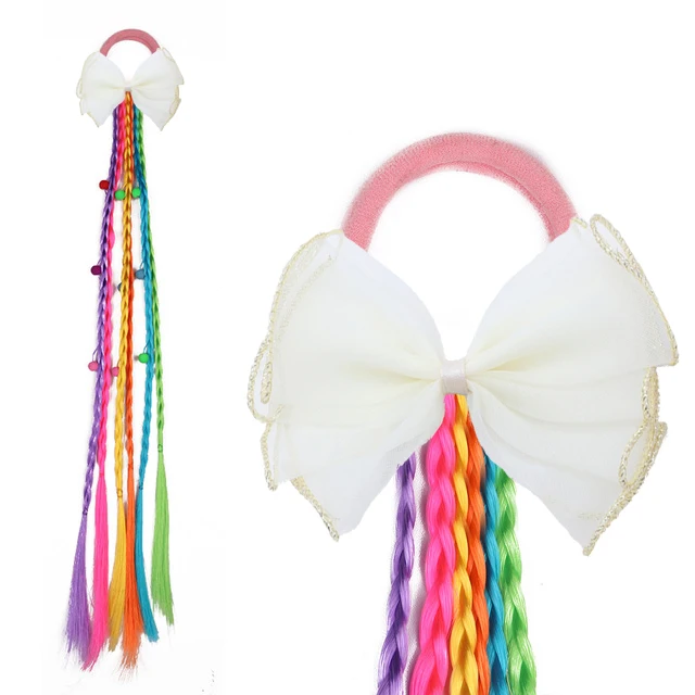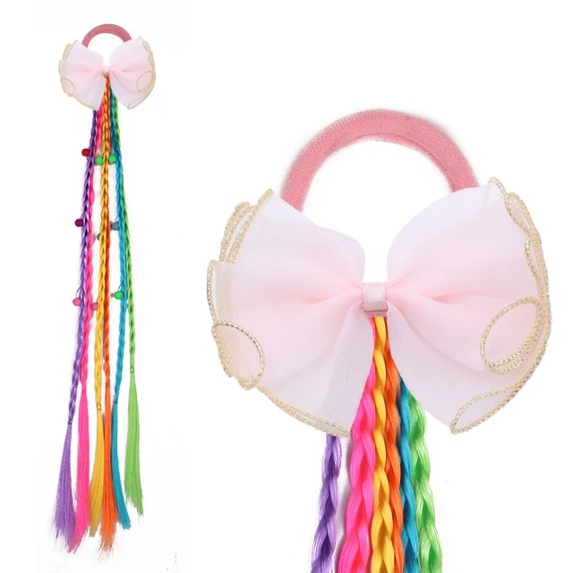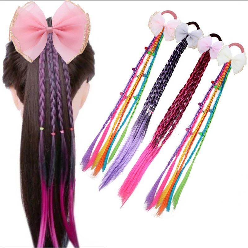 Аксессуары для волос, цветной бант, парик, веревка для волос для девочек, длинные косички, банты для волос, резинка, модный детский ободок, головной убор