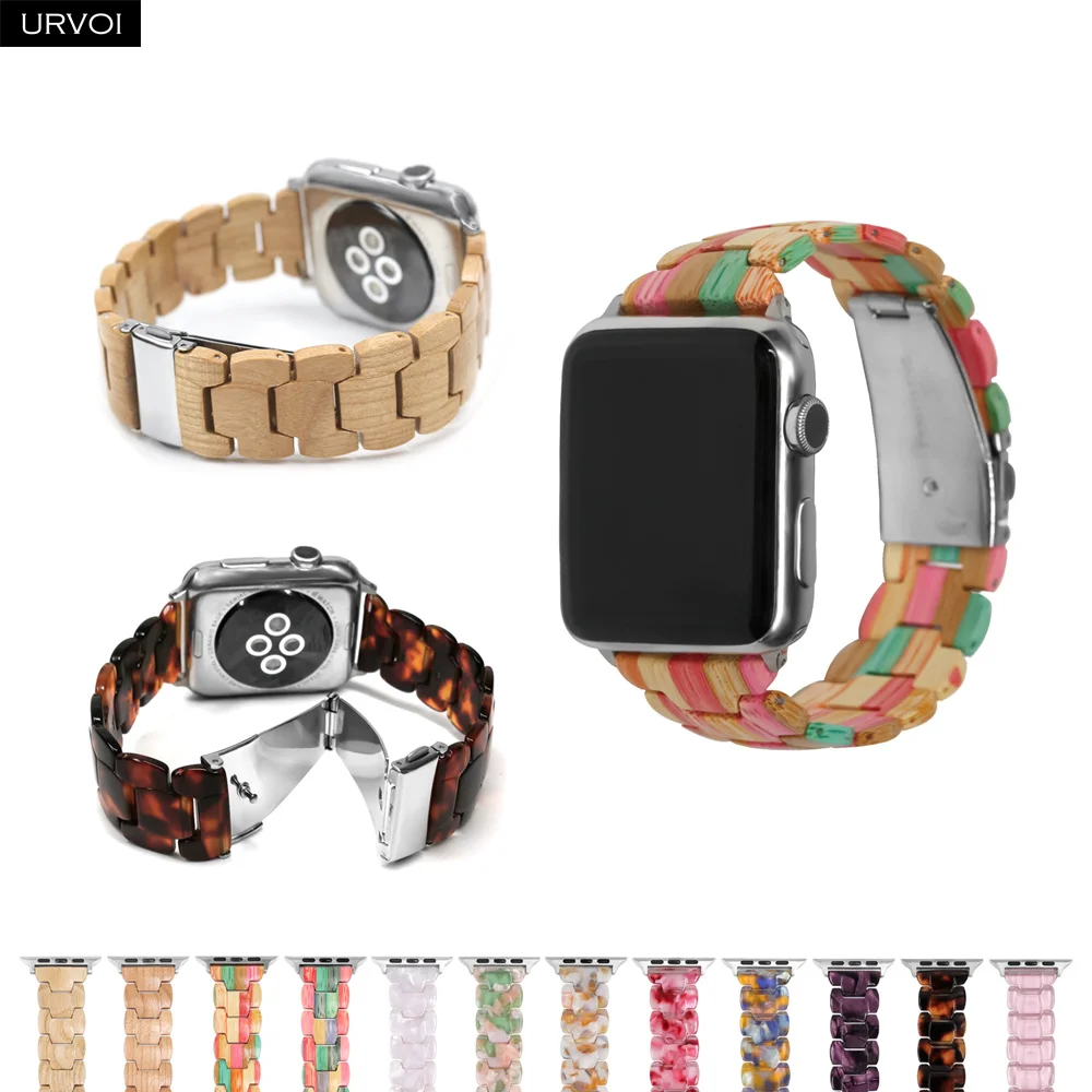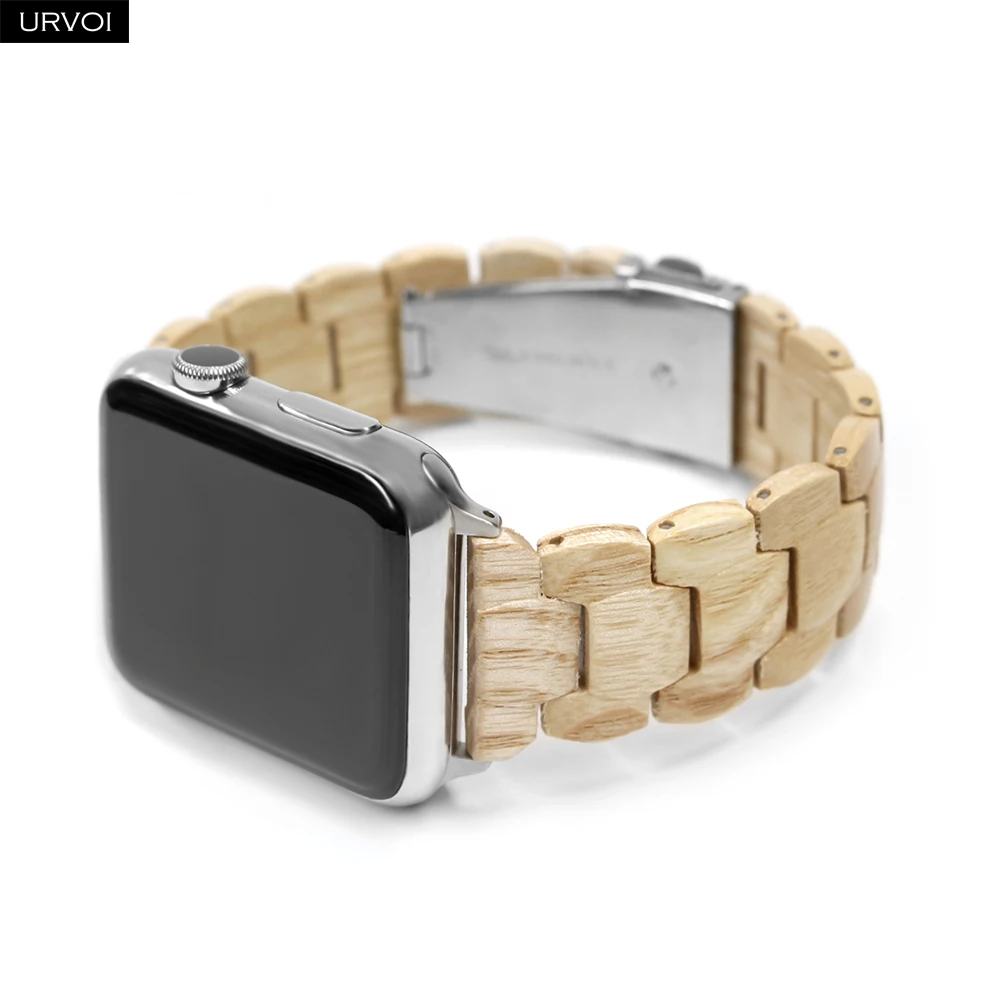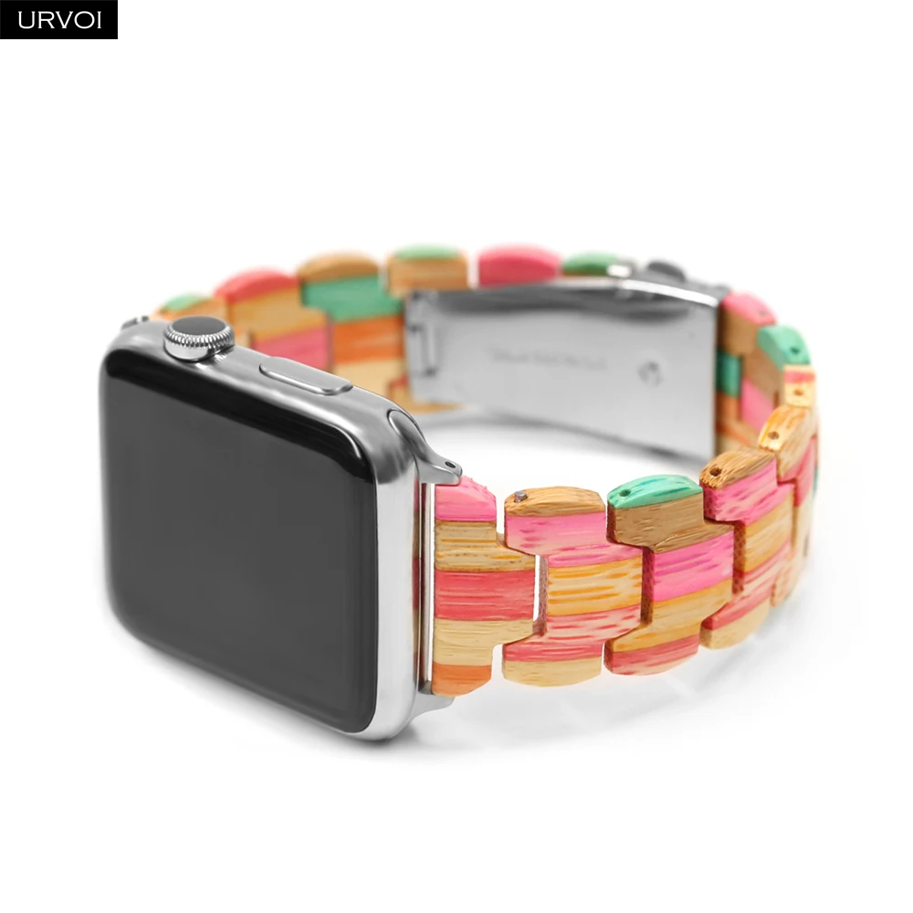 Деревянный ремешок URVOI для Apple Watch 6 SE 5 4 3 2 1, полностью полимерный ремешок для iwatch, бамбуковый браслет, современный стиль 40 44 мм