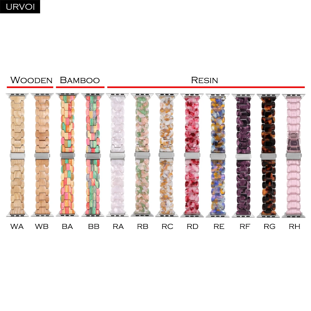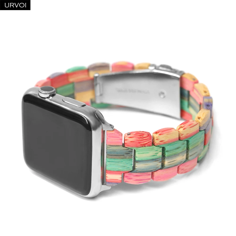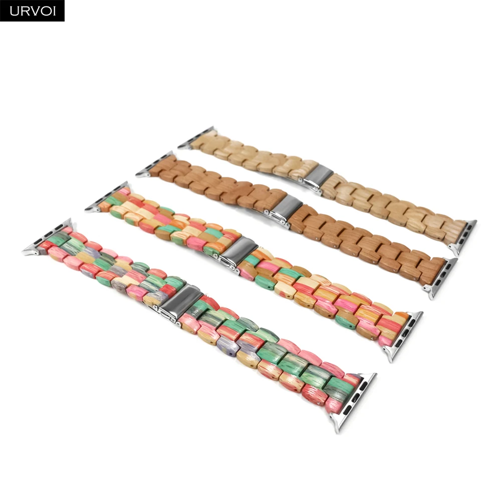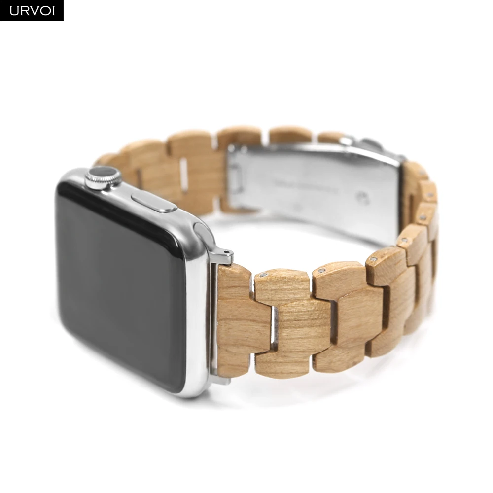 Деревянный ремешок URVOI для Apple Watch 6 SE 5 4 3 2 1, полностью полимерный ремешок для iwatch, бамбуковый браслет, современный стиль 40 44 мм