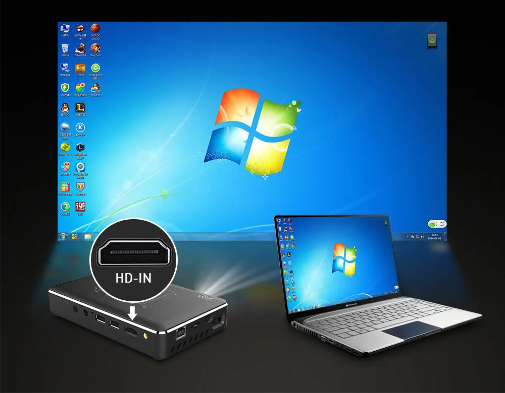 Подключая проектор к компьютеру или мобильному телефону, он реализует тот же экран. Вы также можете подключиться к u-диску или подключиться HD-IN интерфейсу для легкой работы