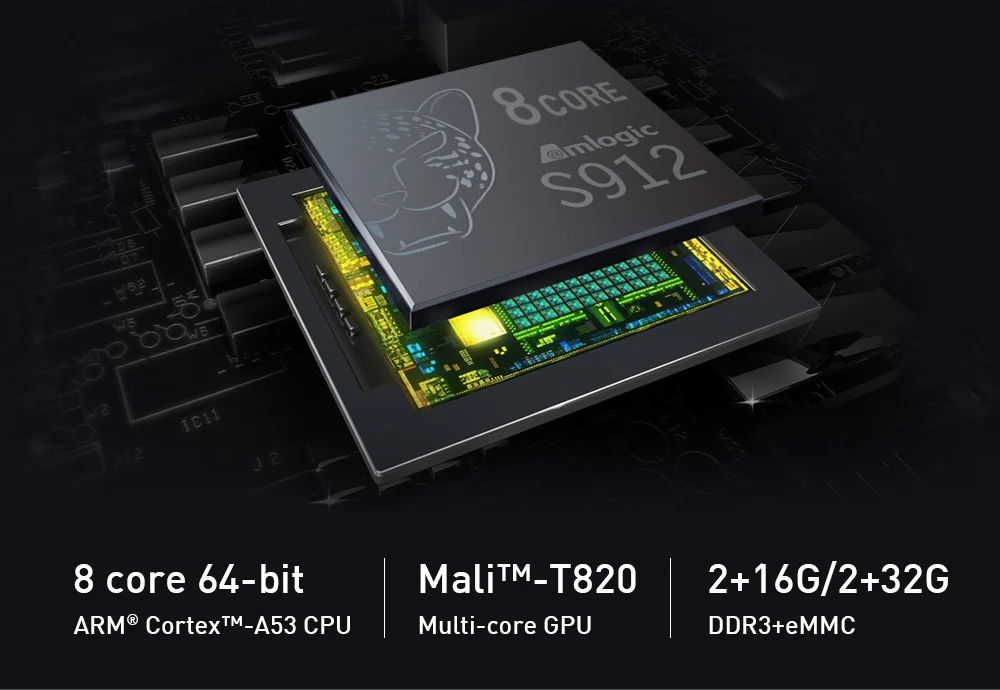 Высокая-конец UHD HDR мультимедиа SoC с 64-битной архитектуре, Amlogic S912 разработан с высокими эксплуатационными характеристиками флагманский 8 ядро Процессор и T820 GPU