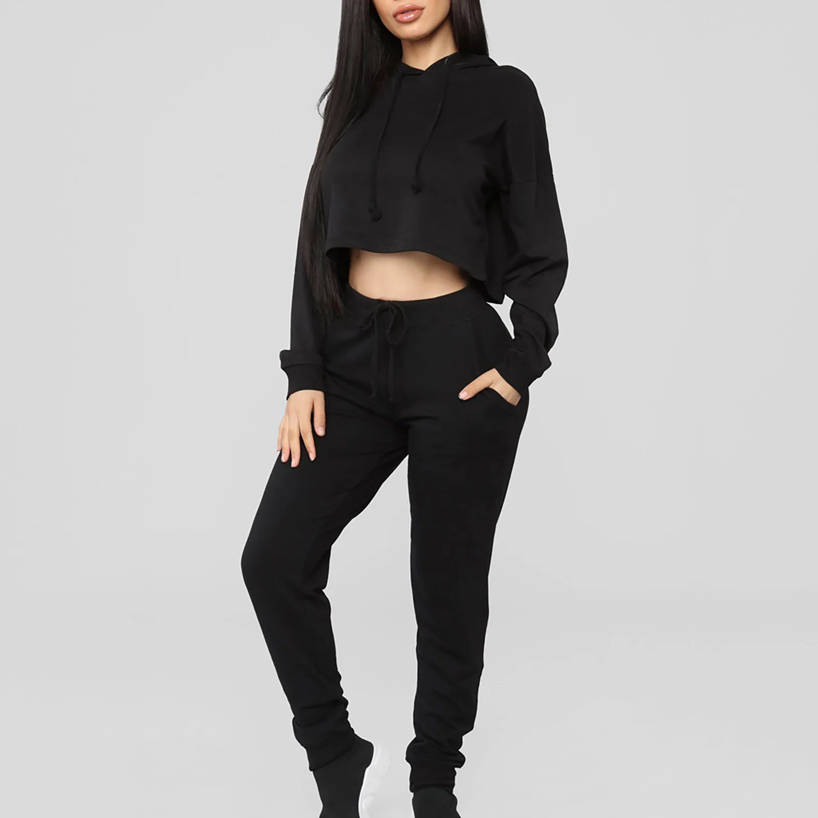 Women's Fashion Long Sleeve Hooded Pullover Pure Color Pants Casual Suit