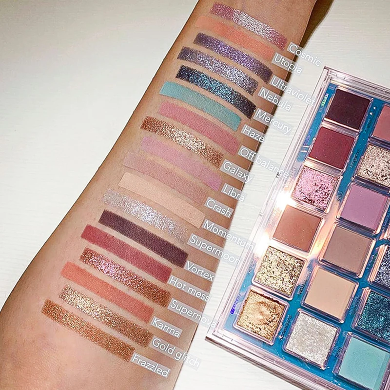 Насыщенные и ведущие цвета. Цветовые гаммы от белого/кремового подчеркивают до темных цветов, отлично подойдут для smokey eyes. В этой палитре есть всевозможные цвета, неважно день, ночь, отдых вечерние, свадьба, вы сможете воссоздать утонченный или авангардный образ днем и ночью!