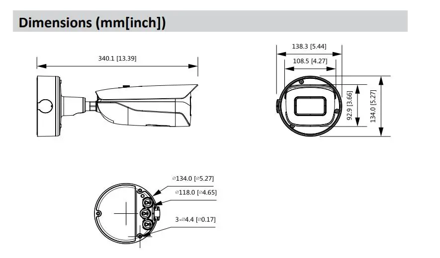 340.1 mm × 138.3 mm × 134 mm (13.39" × 5.44" × 5.28") (L × W × H)